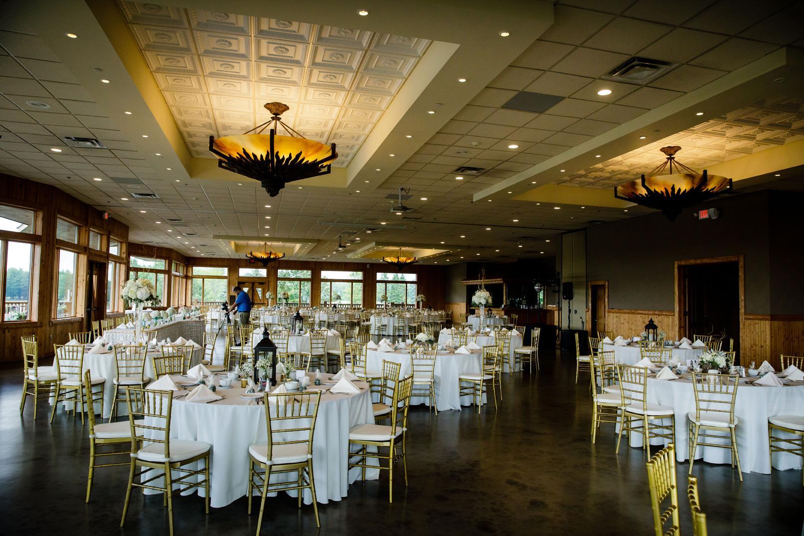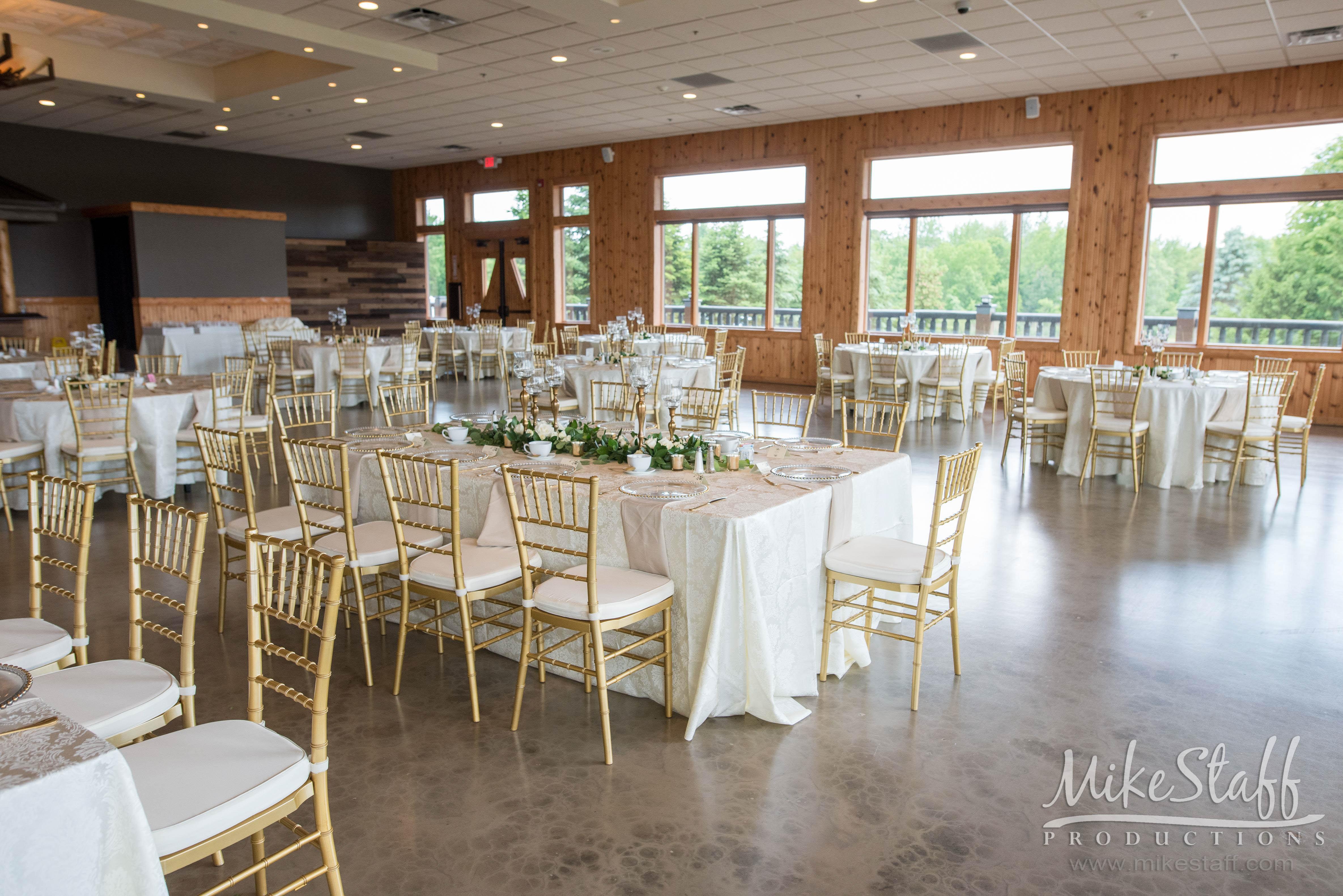 The elegant, rustic Grande Hall makes for a stunning setting with its outdoor balcony and amazing views, overlooking the golf course.