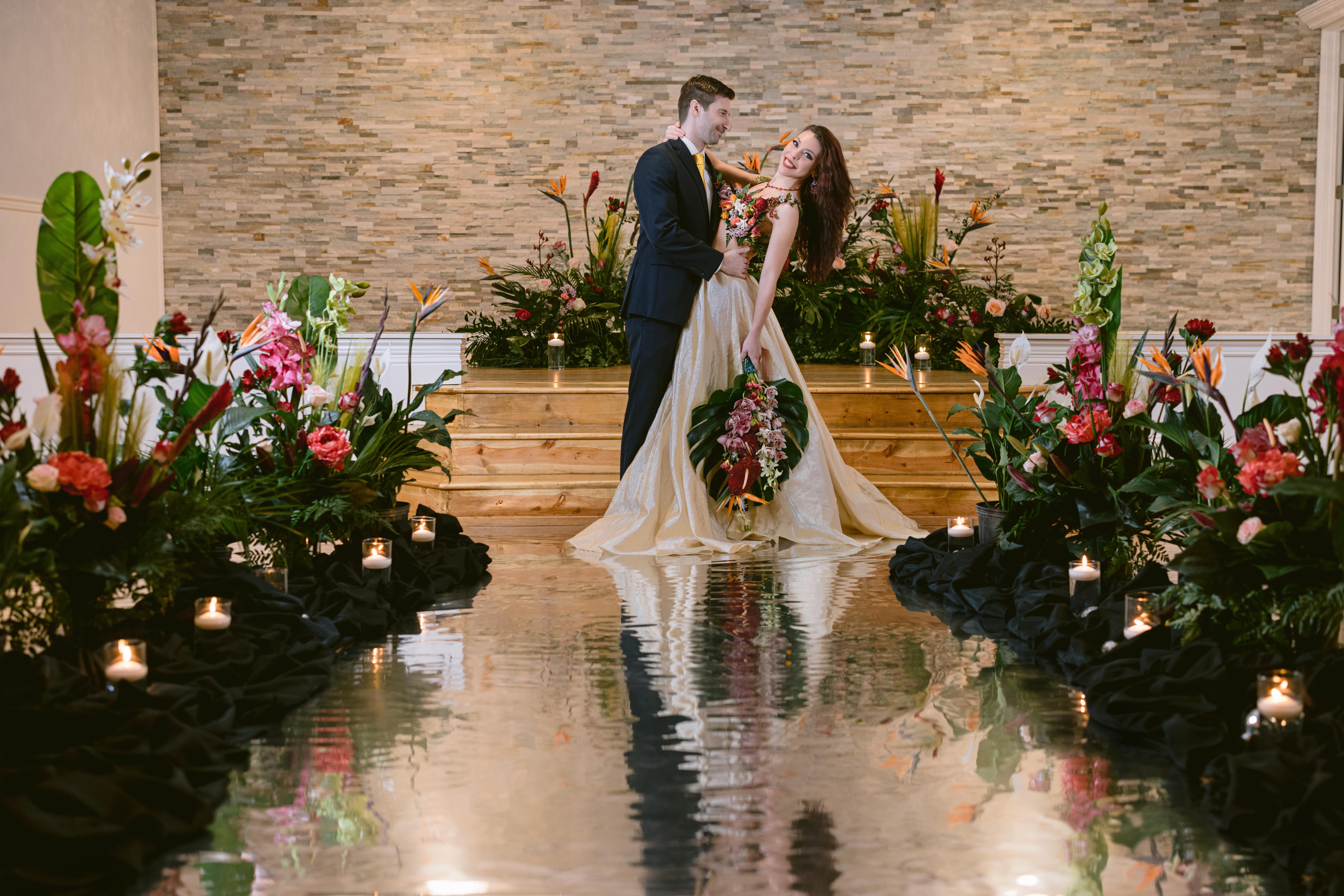 - Chiavari chairs - Table linens - Stunning crystal chandeliers - Customizable lighting to complement your decor - Access to a vast selection of decor items (at no additional cost) - Arbor for your altar or decorative needs - Up to 12 hours of access to the Gallery Lounge, Crystal Bar, Orchid Ballroom, and two get-ready suites.