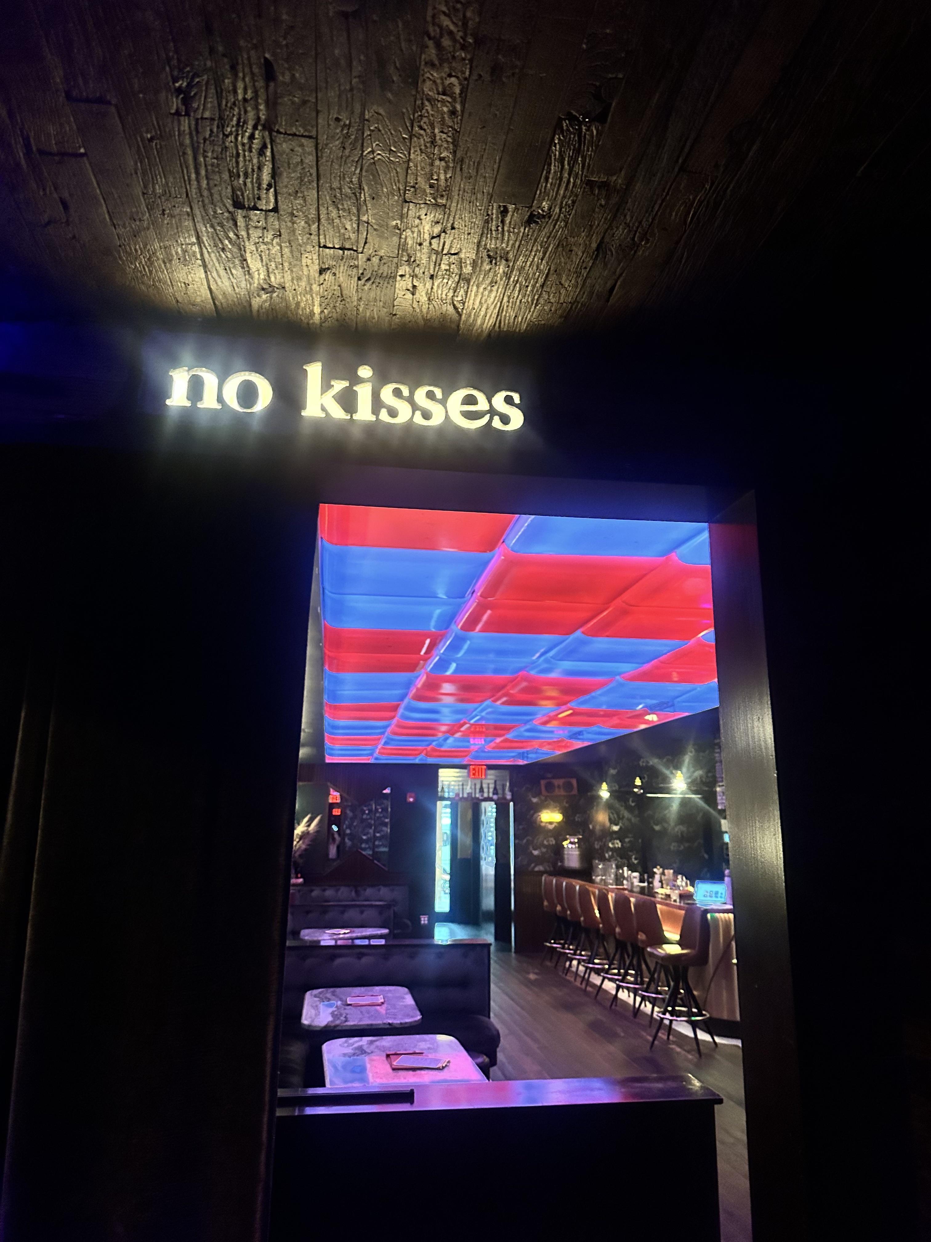 Hidden behind Sonny’s, No Kisses is a moody, low-lit cocktail bar with velvet booths, moody lighting, and a vinyl DJ booth. It's the perfect after-hours wedding lounge, dance floor, or cozy cocktail spot—ideal paired with the Sonny's patio for dancing and vibes!