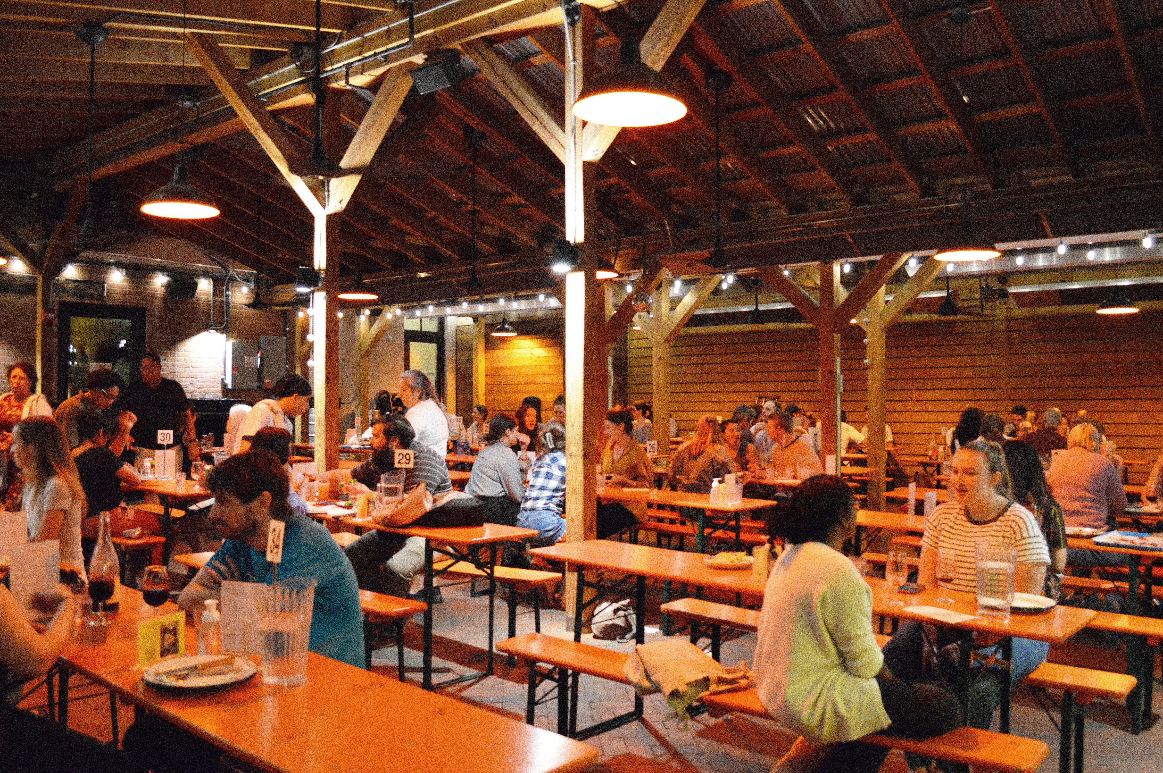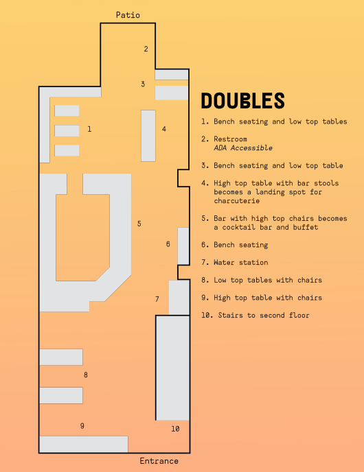Doubles is a warm, design-forward café tucked behind Sonny’s Pizza, perfect for intimate gatherings, smaller weddings, or welcome parties. With cozy wood tones, vintage details, and natural light by day, it easily transforms into a candlelit lounge by night—and connects seamlessly to Sonny’s garden patio and No Kisses for larger celebrations. Doubles is a great space dancing and karaoke to intimate ceremonies!