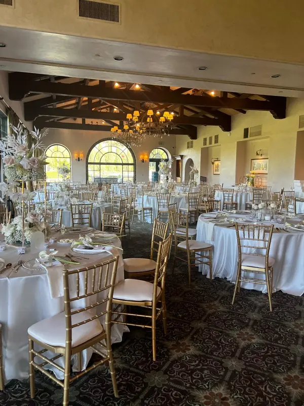 Surrounded by a sweeping view of our lush golf course, our outdoor ceremony site offers a peaceful and picturesque setting for your vows. With the San Gabriel Mountains in the distance and natural greenery all around, it's a serene and romantic backdrop that perfectly complements your special day. Whether you're planning a grand celebration or an intimate exchange of vows, this open-air space captures the beauty of nature and the joy of the moment.