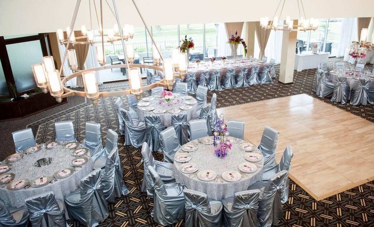 Indoor receptions can take place in the ballroom, which has a maximum capacity of up to 200 guests and features a neutral theme, accommodating a variety of color schemes and wedding décor. The ballroom also features its own modern, chic décor such as elegant chandeliers. The room boasts plenty of windows that afford unmatched views. A dance floor is available in this ballroom.