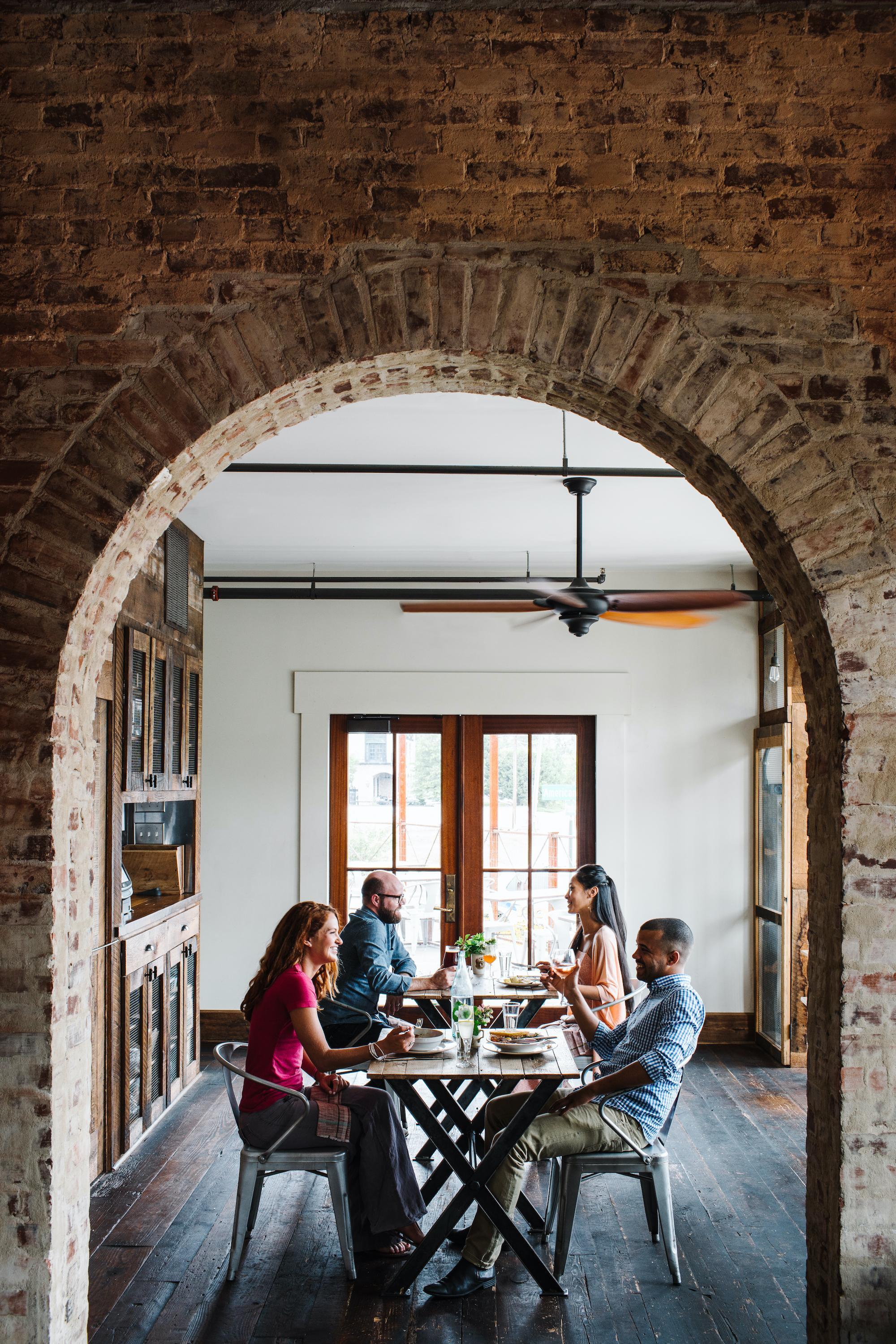 - Dimmable lights - Wooden tables and chairs for seating - Lots of Natural Light - Ceiling Fan