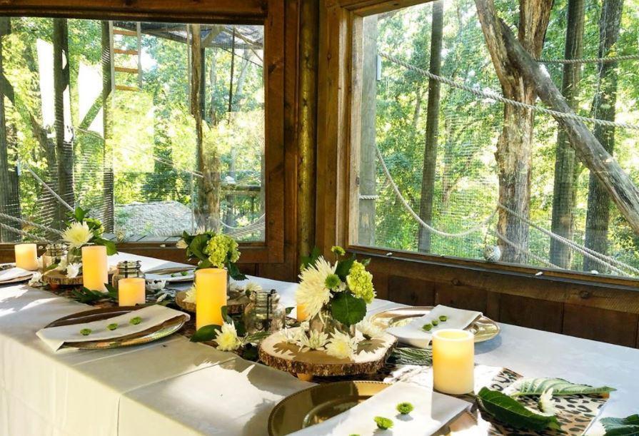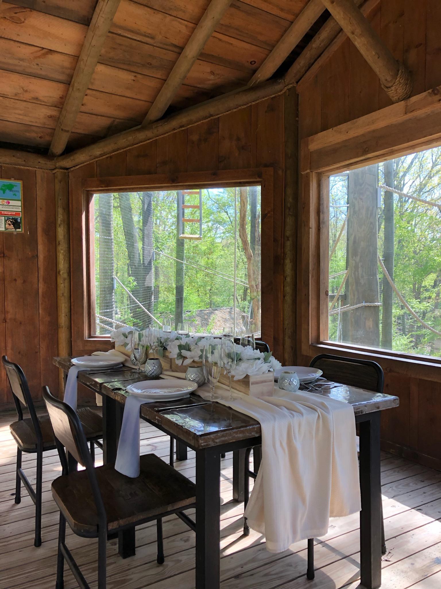 The Siamang habitat is out in the Wild at Southwick's. The perfect location for a cocktail hour, micro wedding dinner, or event a ceremony. Weather permitting the Siamang will be swinging by in the windows overlooking their habitat. The space sparkles at night with twinkle lights and a fire pit.