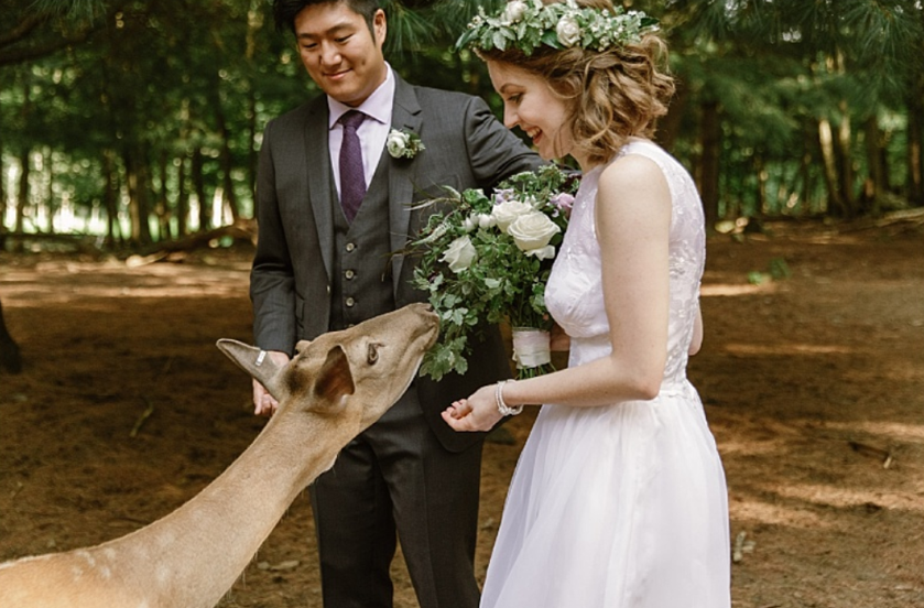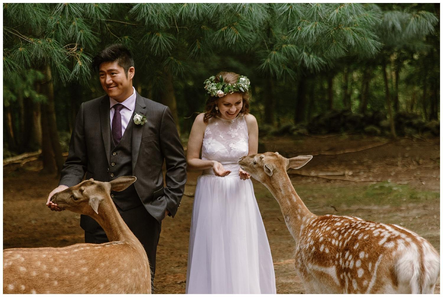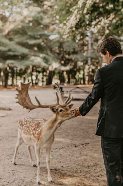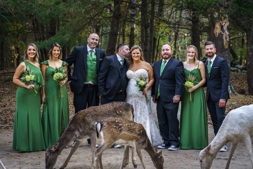 The Deer Forest is a natural 35 acre New England habitat for our Fallow and Sika deer. Our free-roaming deer love to say hello to your guests and create a beautiful backdrop for your vows. The natural landscape, golden light and tranquil setting create a romantic, one of a kind ceremony venue. Following your ceremony our keepers will be on hand to help your photographer capture the most magical photos.