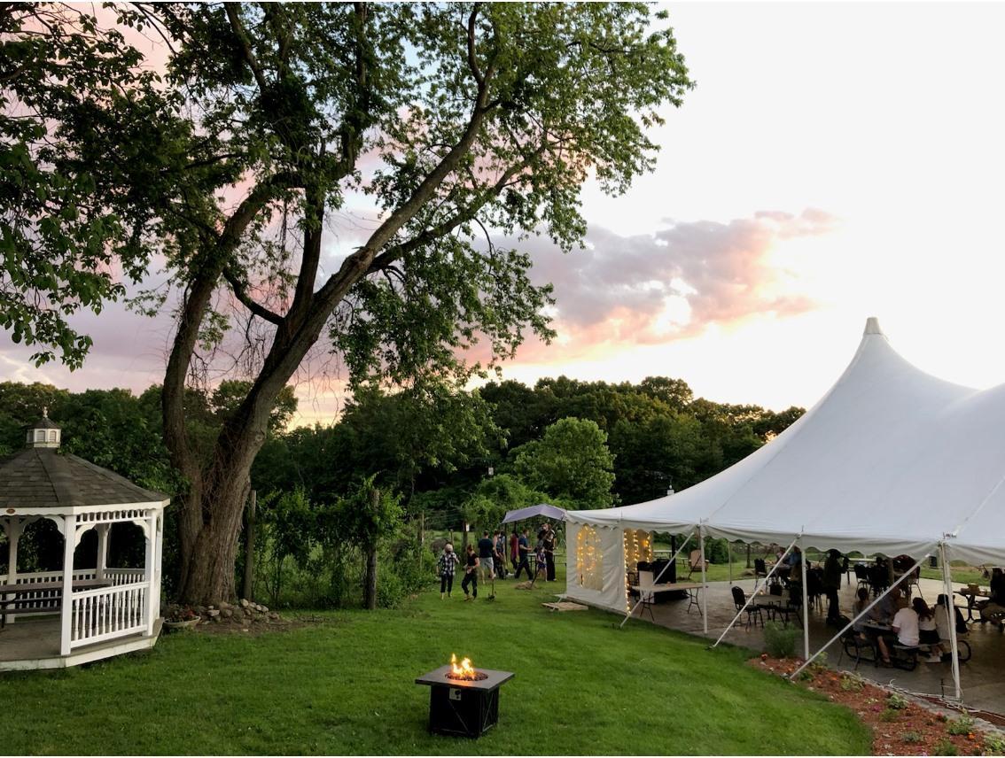 The Daniel's Patio can be used as part of Daniel's Room or rented on it's own. It's an open air space adorned with bistro lights, fire pits and walks out to Southwick's Zoo. Listen to the Lion's in the distance as you enjoy a cocktail with friends!