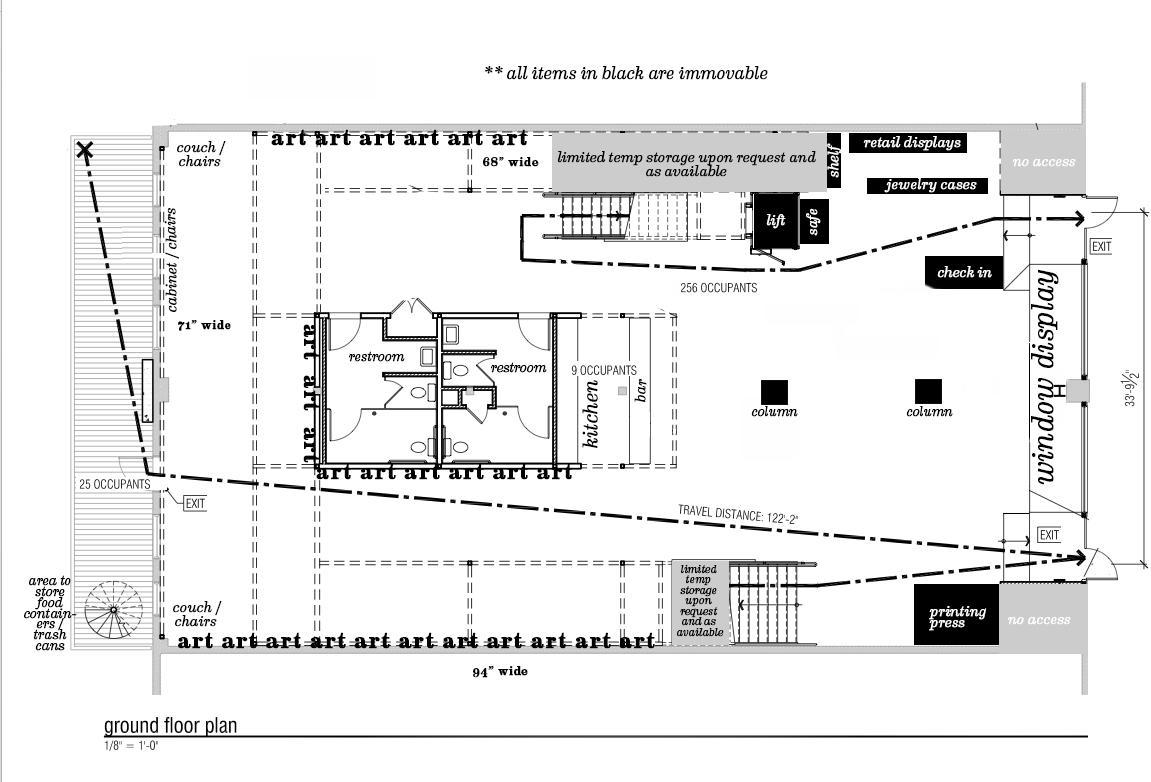 4500 square foot ground floor 1500 square foot mezzanine 500 square foot patio (approximately 25), great for prep area ADA-accessible second story mezzanine level (lift) and accessible restrooms ADA compliment kitchen area with bar Temperature controlled 6 cocktail tables/belly bars 2 rolling coffee tables 10 vintage wood folding chairs 12 metal folding chairs available 5 6ft rectangular folding tables available 2 vintage chairs available for use 1920’s period design