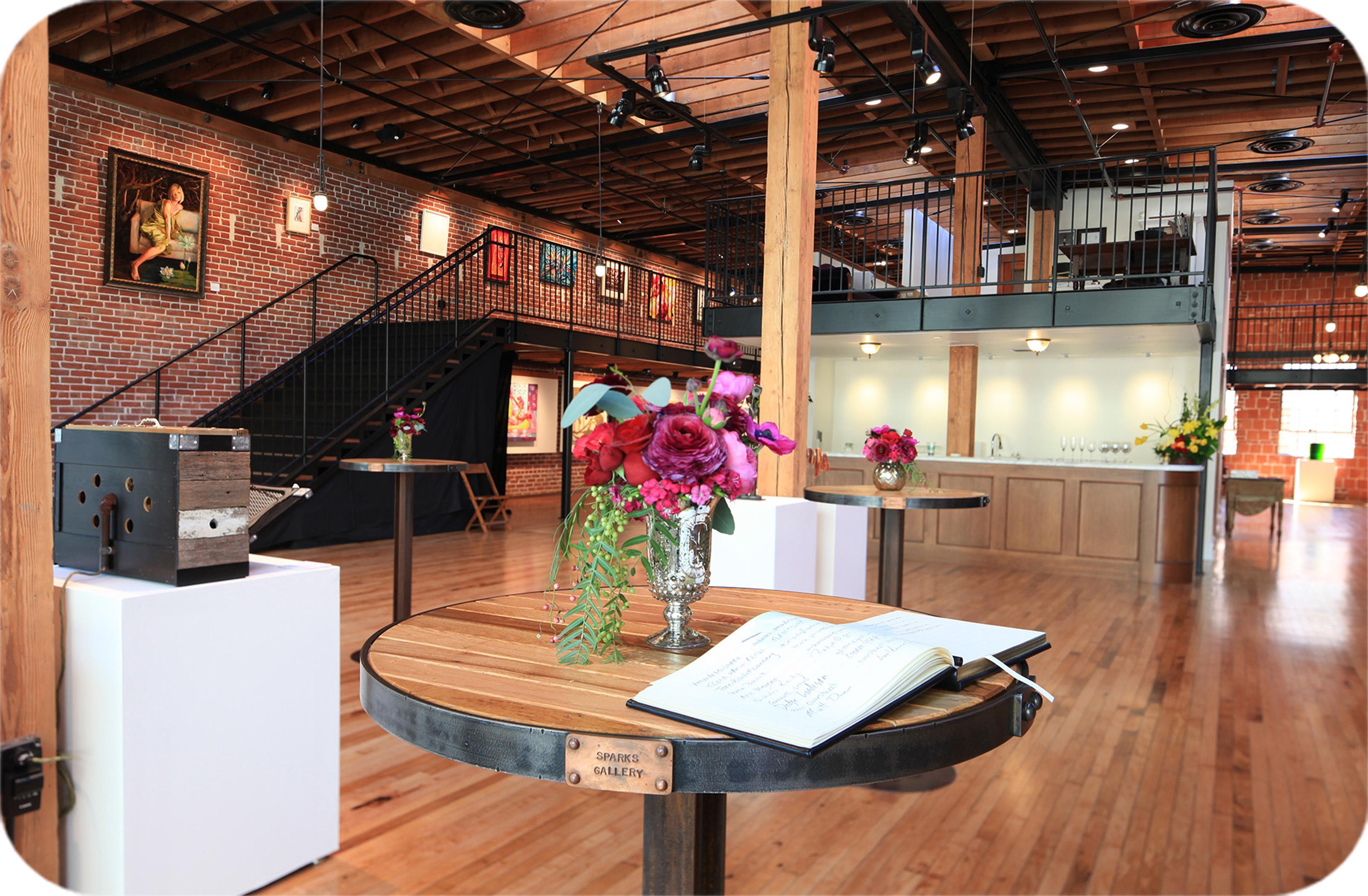 Originally the historic Sterling Hardware building, Sparks Gallery now displays contemporary works of art from living artists in the Southern California area. Our stylish mix of modern exposed brick walls and original vintage 1920s maple flooring makes for a premier upscale rental venue. It is the ideal spot to host trendy and comfortable wedding.