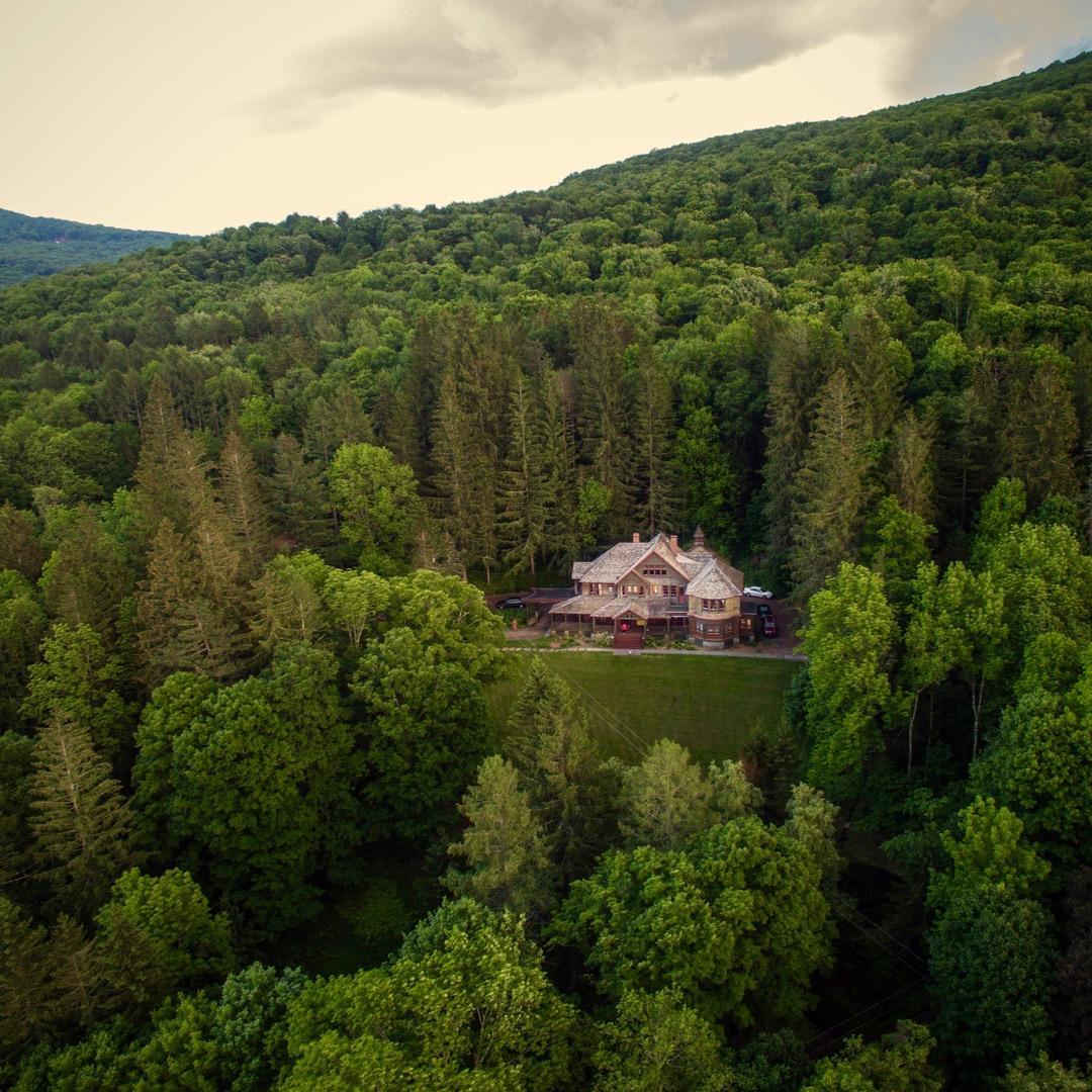 Spillian is a place of dreams. An exquisite mountain great camp built in 1888 by the Fleischmann's Yeast Family, Spillian evokes the rustic elegance of the Gilded Age with original, unique historic oil murals, furnished with antiques, a Steinway piano, a concert harp, all on thirty two acres in the magical Catskill mountains. Eight enchanting rooms, each differently appointed, a grand dining room with a huge table for feasting, antique furniture, silver, art, and oriental rugs, 2 wood burning fireplaces, a porch to die for, claw foot tubs in every bath, a pond, an utterly romantic Victorian era rustic gazebo, and forests to explore, filled with moss covered rocks, hemlocks. Intimate, completely private, charming, and elegant with superb in-house catering. Spillian is a four season wedding location and was built for family and for celebrations. Come and see what memories it can create for you!