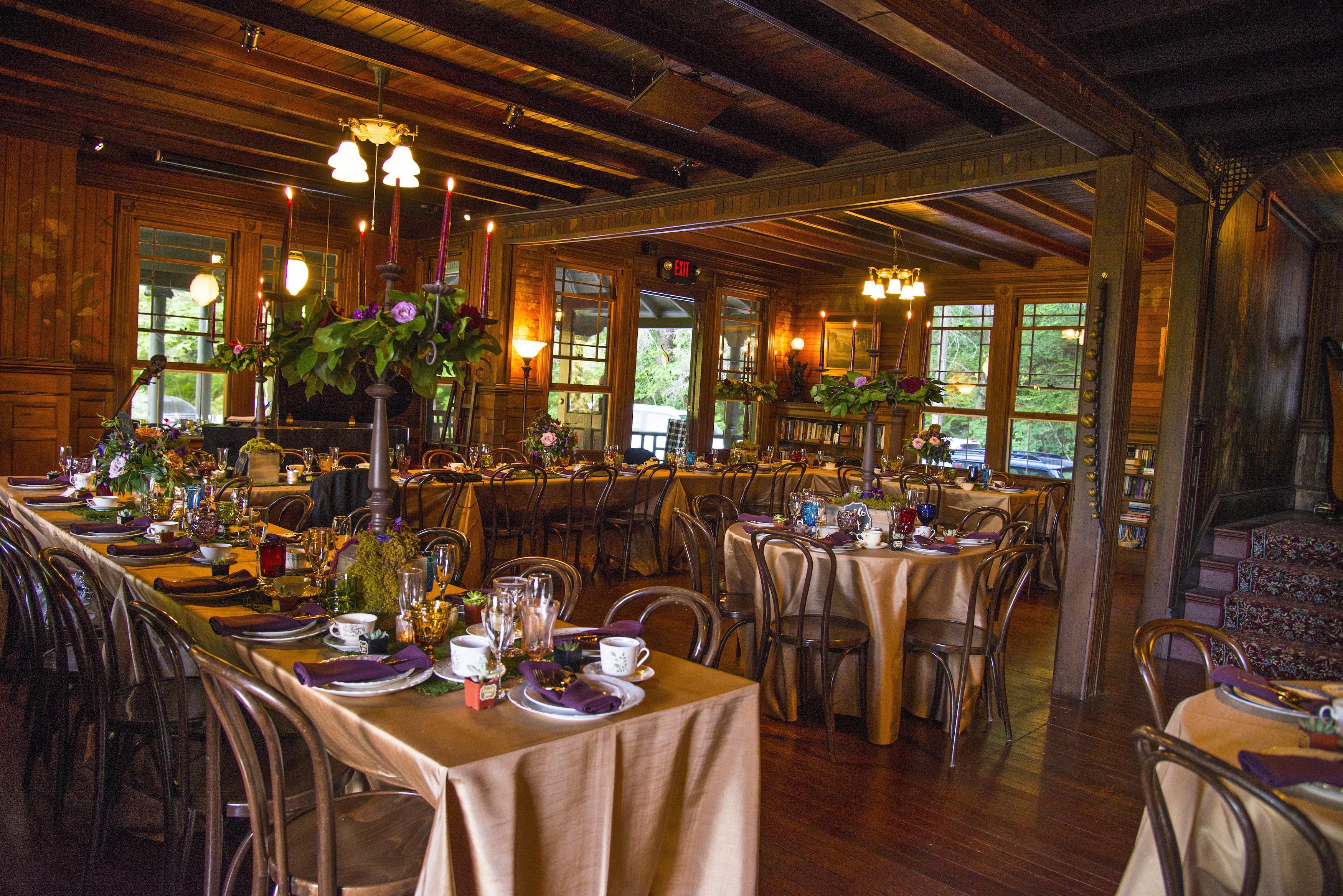 I cannot fully capture the magic of Spillian in words. There is a feeling there that just cannot be described. It glimmers and sparkles with history, magic, and warmth. We had our wedding weekend there 11/22-11/24 and when I say it was perfect, I mean it. The rehearsal dinner taco bar was spectacular and so much fun. The wedding ceremony outside in the snow was epic, and the dinner was superb. You get to pick your own menu - like, WHATEVER you want! People raved about the food. We had about 85 people and the tables all set up inside looked gorgeous and it was totally roomy. The main room transformed into a dance floor made it feel like we were partying in the house from Clue or Haunted Mansion. The owners and staff are incredible. They won’t just help you plan your wedding - they’ll become your friends. They not only attended to every detail we cared about, they also took the time to really honor the emotions and history behind our wedding and marriage. I wish we could do it all over again. It was epic and magical and truly perfect. I am so glad we can return for their weekend events!