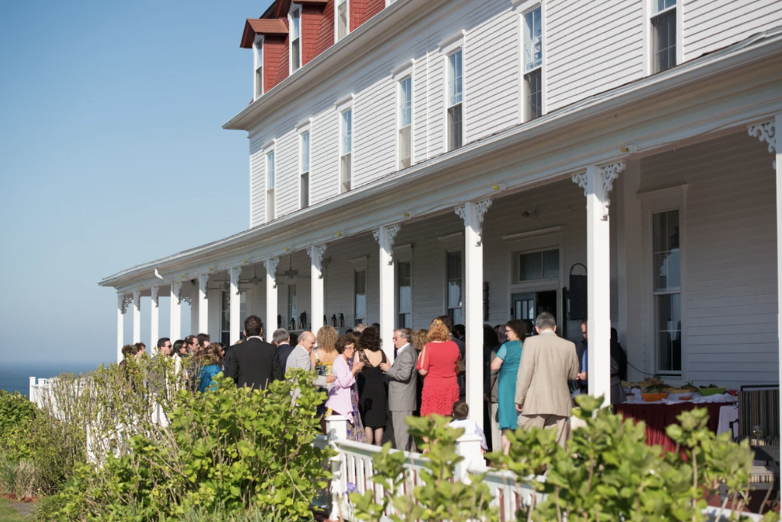 The Seaside Veranda is the Spring House Hotel's landmark feature. A partially covered, wraparound porch is the perfect setting for enjoying cocktails and hors d'oeuvres. It features an outdoor bar and plenty of space for guests to mingle. The view from the veranda cannot be beat.