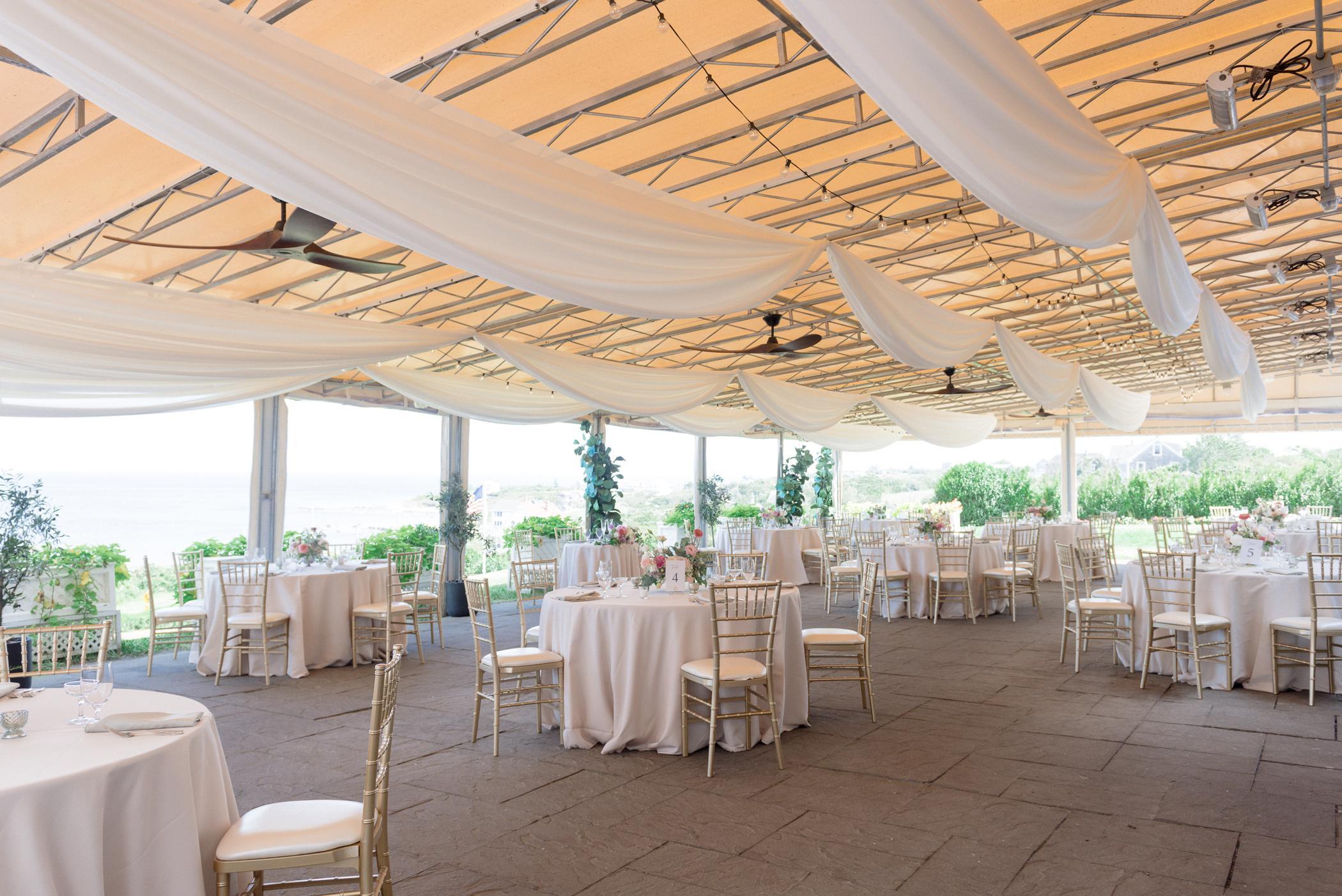 The Ocean View Terrace, the eastern patio for the hotel, is a perfect site to hold your reception. Imagine your guests enjoying a delicious meal while overlooking the Atlantic Ocean. This tented space has clear sides that can roll down in case of inclement weather, along with built-in heaters to warm up a chilly evening. We also offer this space for smaller events. Imagine your ceremony on the side lawn, with cocktail hour, dinner, and dancing all here!