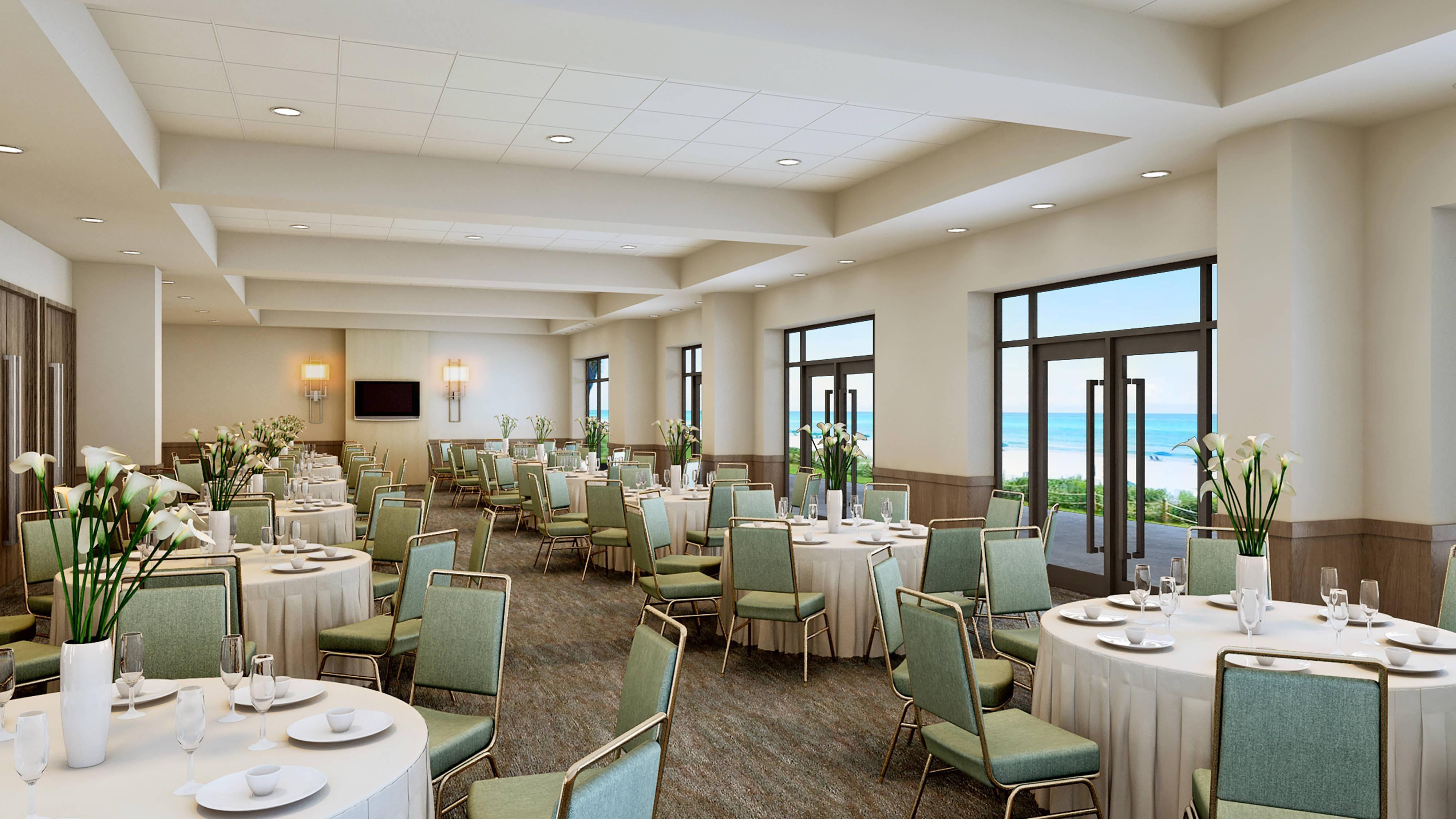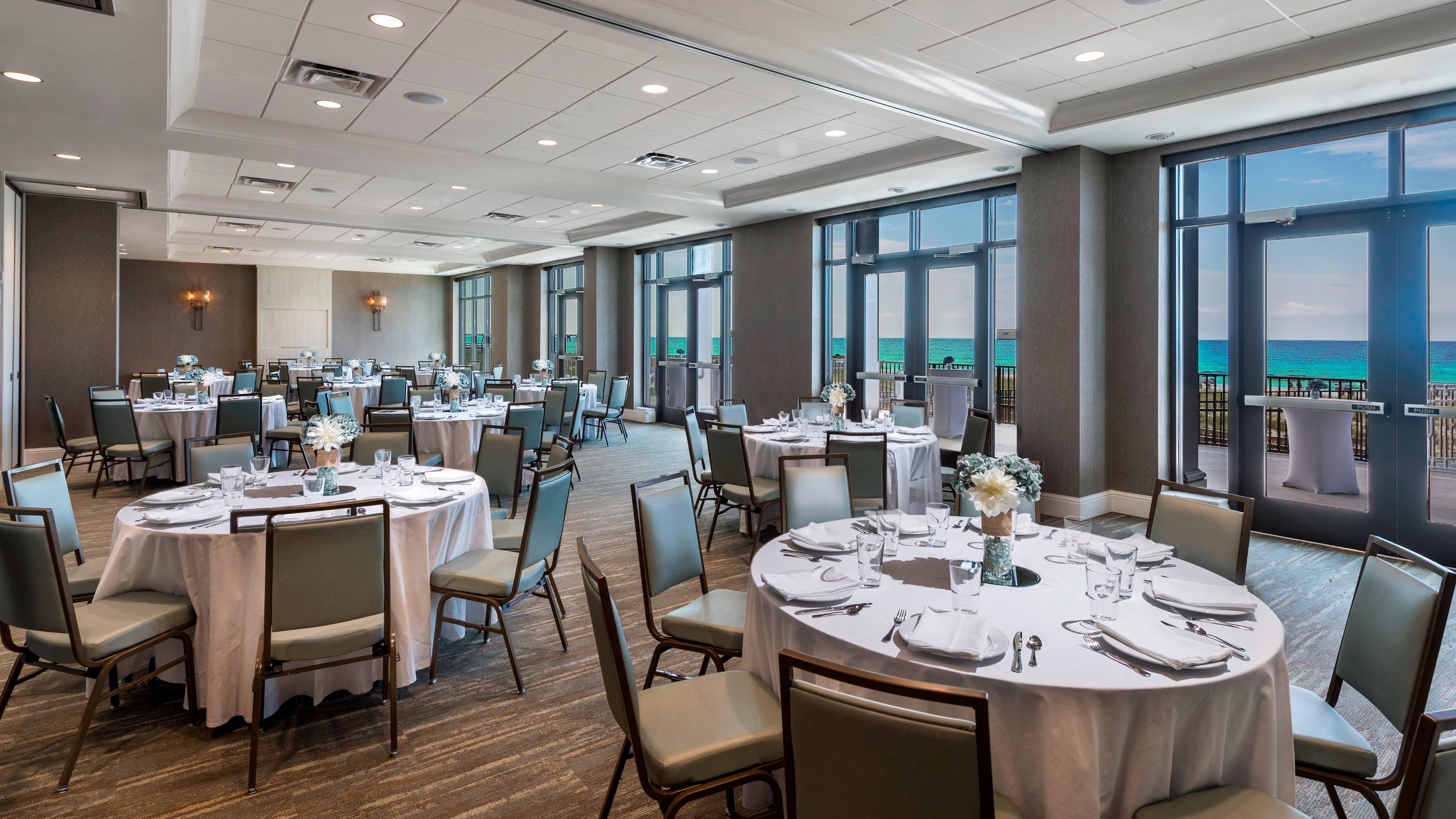 This ballroom looks onto the beach and features patio access so you can get closer to the ocean.