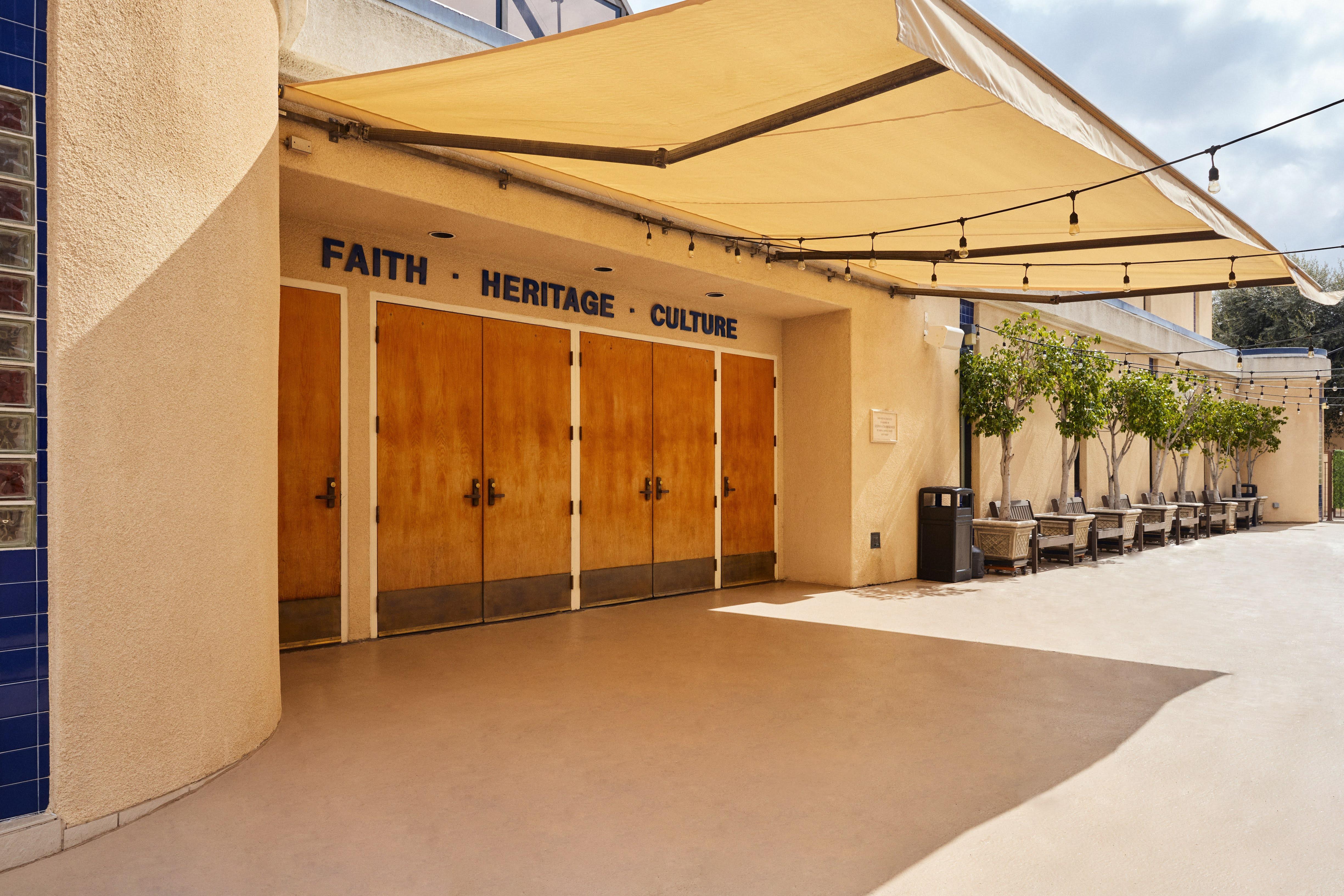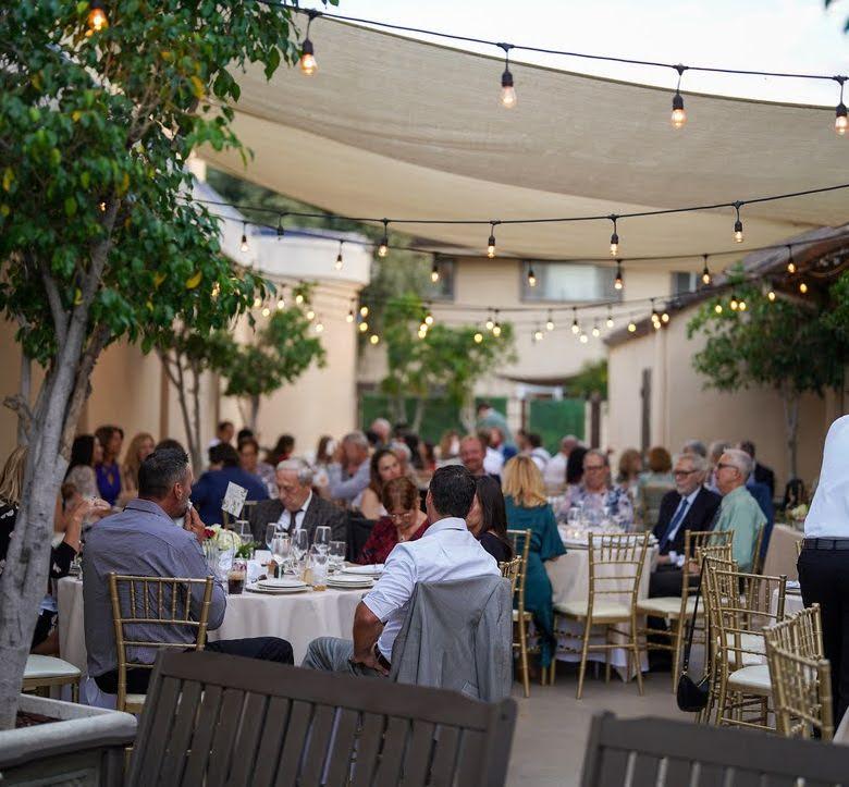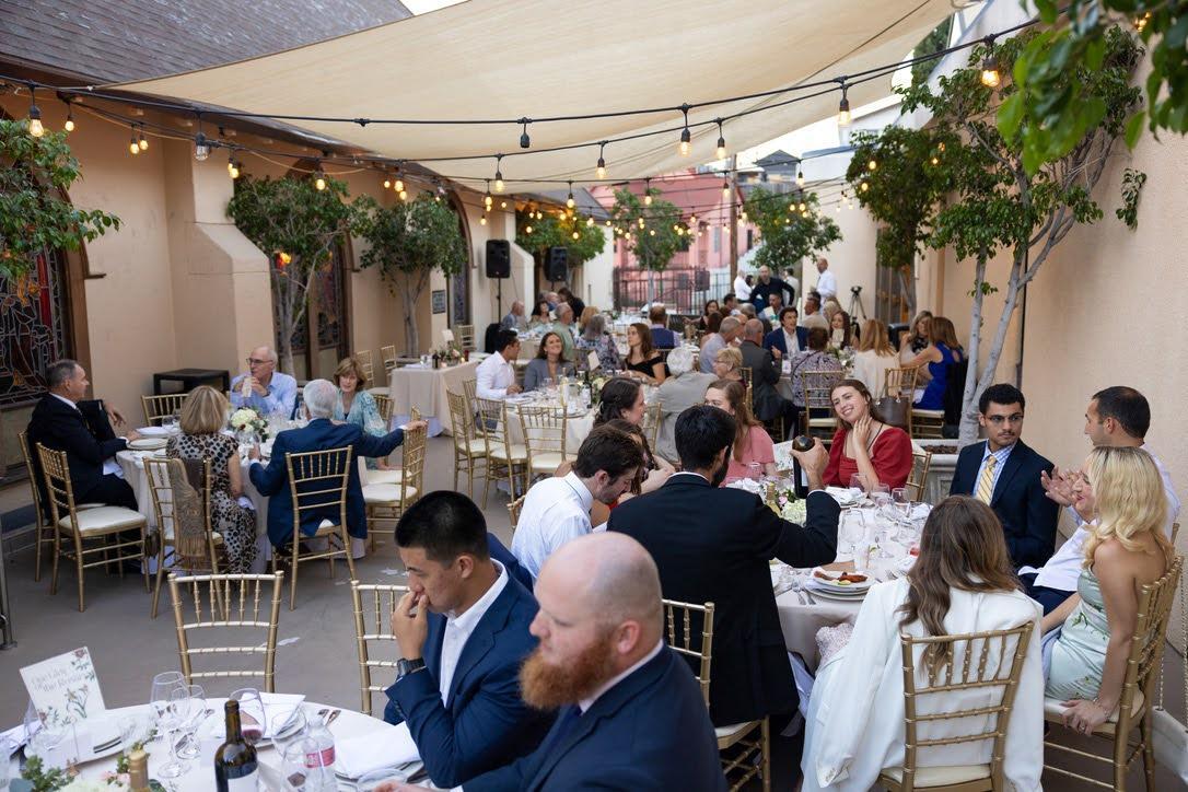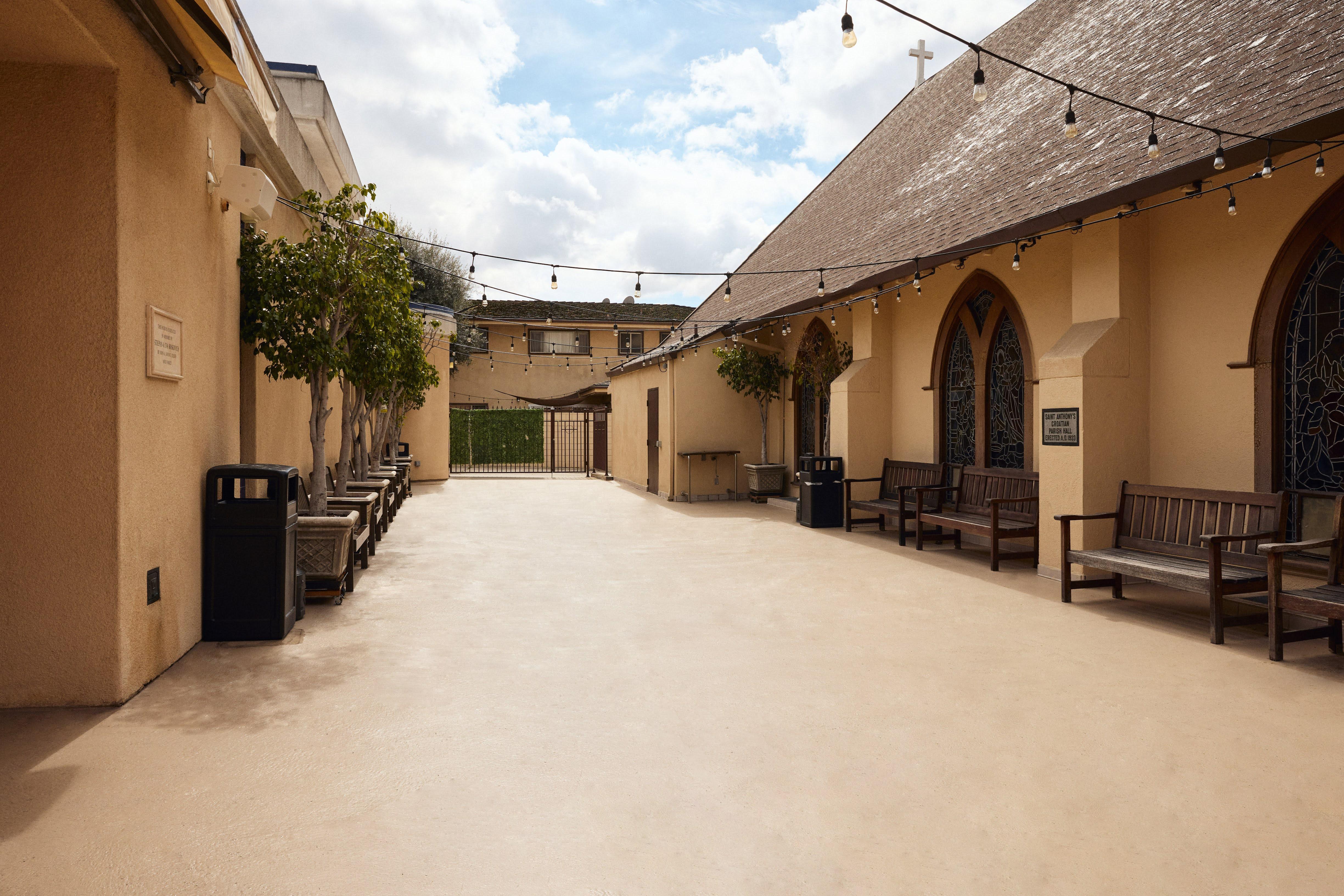 A little taste of peacefulness in the hustle and bustle of downtown LA, check out our outdoor event space. The Covered Patio features benches and tress around the perimeter. Enclosed on the north side by the 113-year-old church stained glass windows and on the south side our Parish Center this is a versatile outdoor oasis.