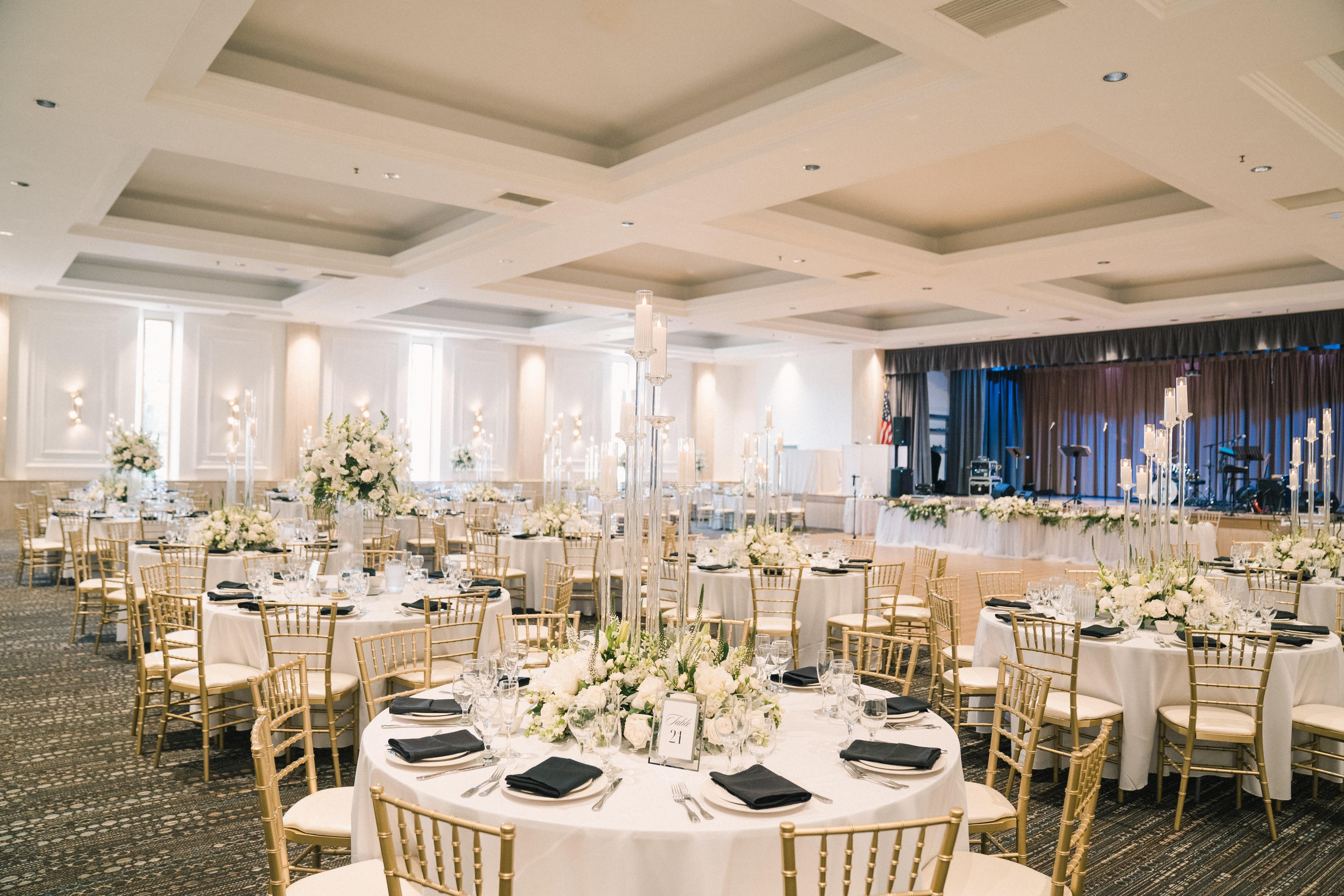 The 4,086 square foot carpeted ballroom features a 750 square foot stage, 1,086 square foot dance floor, marble travertine, recessed lighting and modern sconces. This space is perfect for the luxury event of your dreams or a professional conference space. The ballroom seats 400 people.