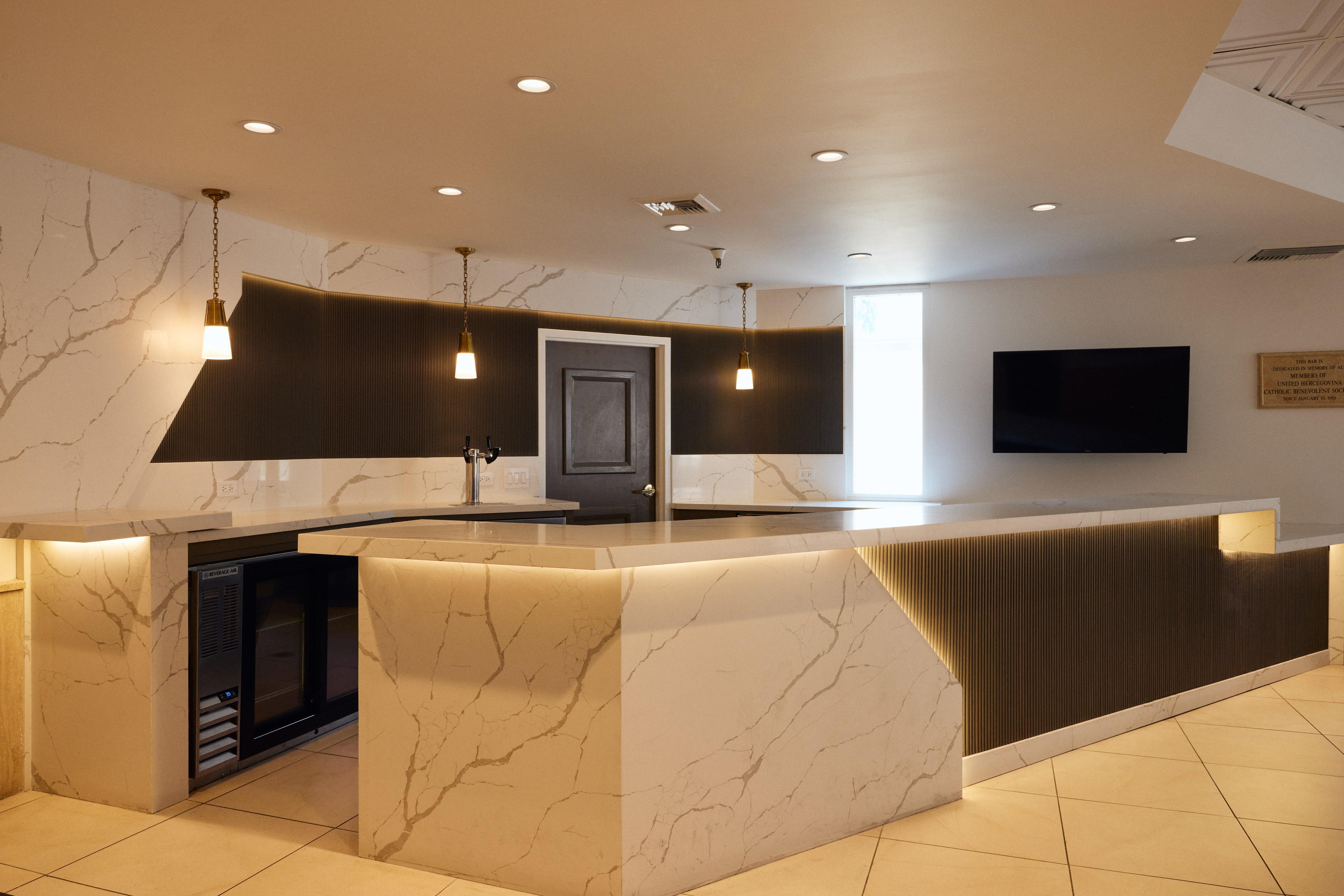 The Lobby Bar, formerly known as the Small Hall, is a tiled reception area featuring a full bar, skylight, dimmable recessed lighting and patio access. Perfect for hosting under 100 people, this space offers a cozier atmosphere. The full bar includes access to a kegerator and under counter refrigeration. Perfect for smaller events, this contemporary space is a blank canvas.