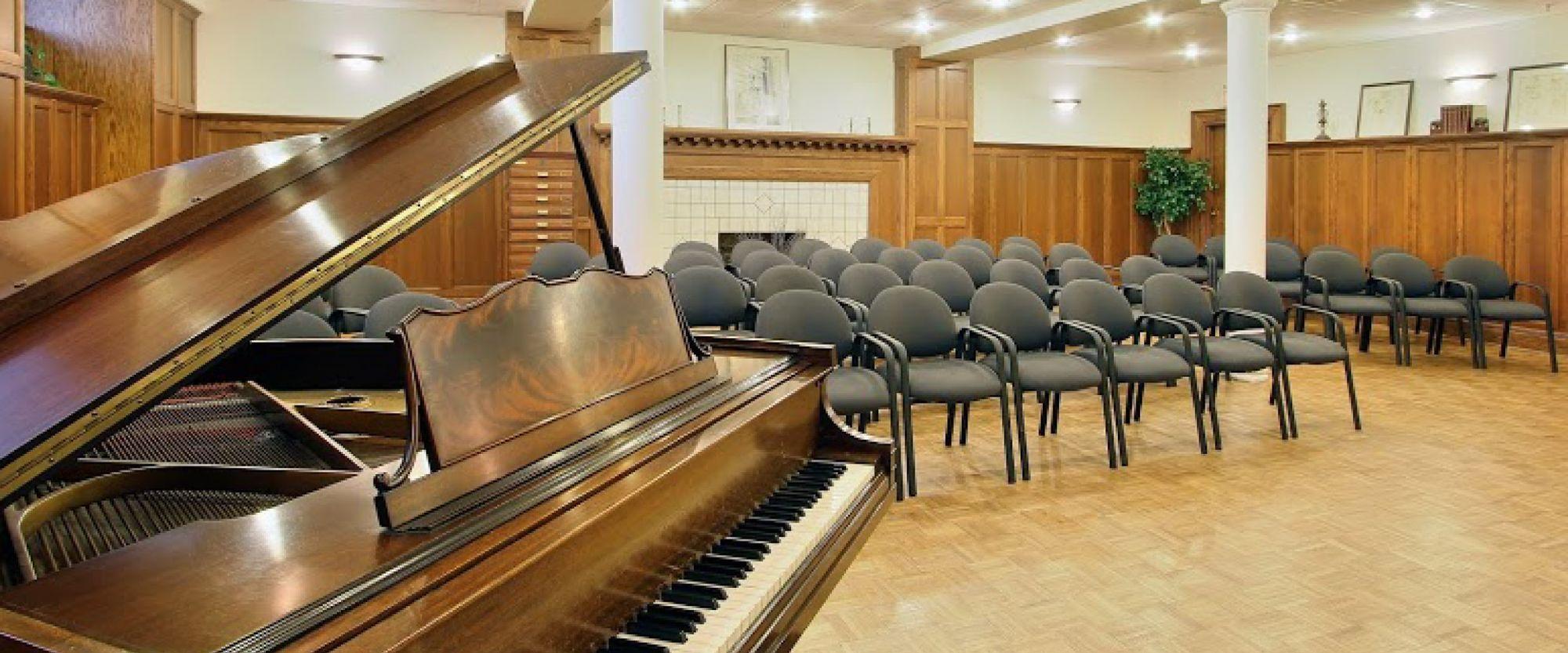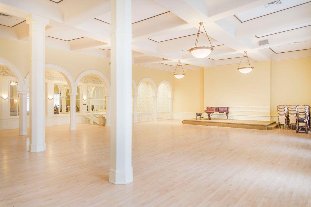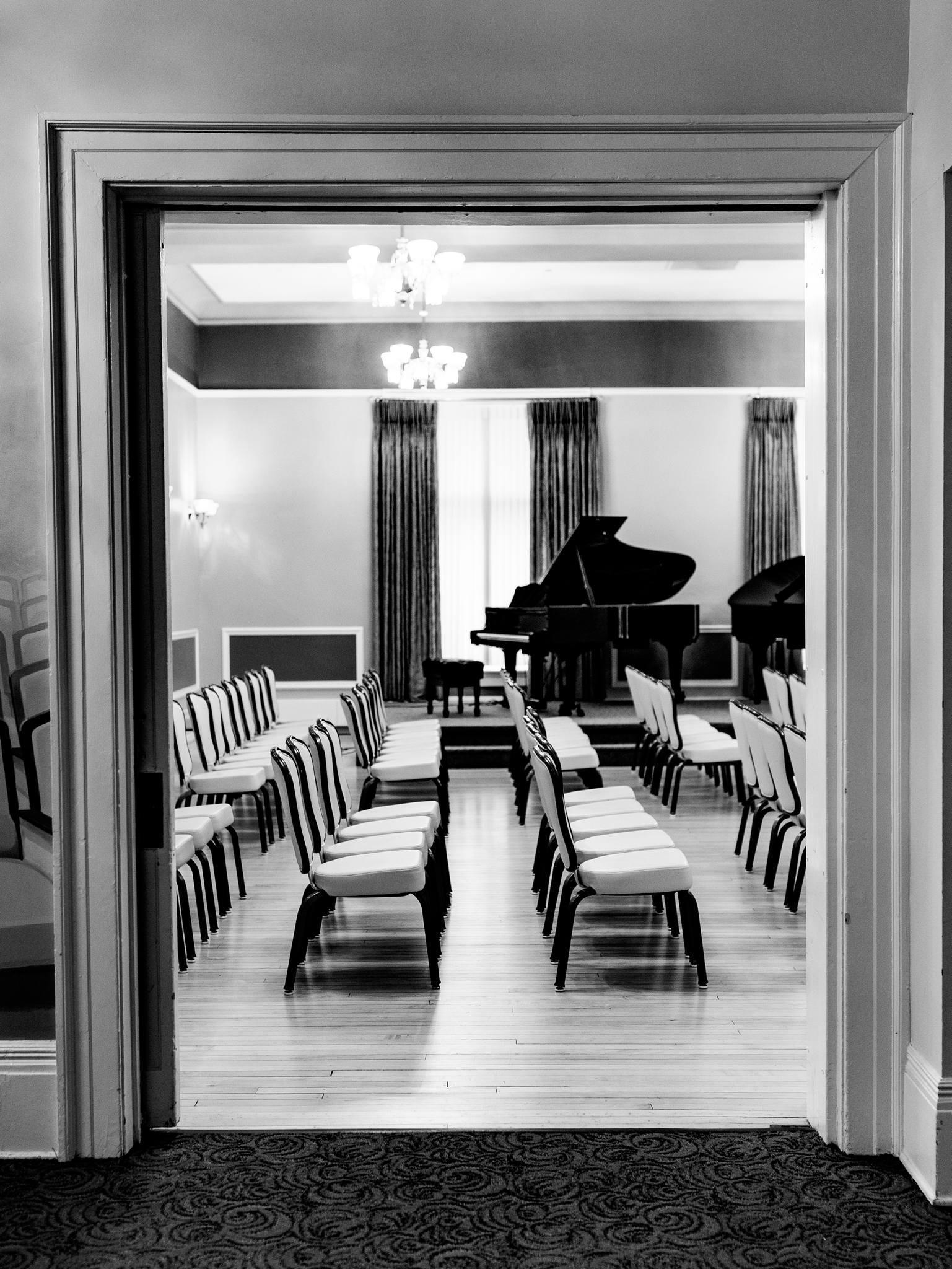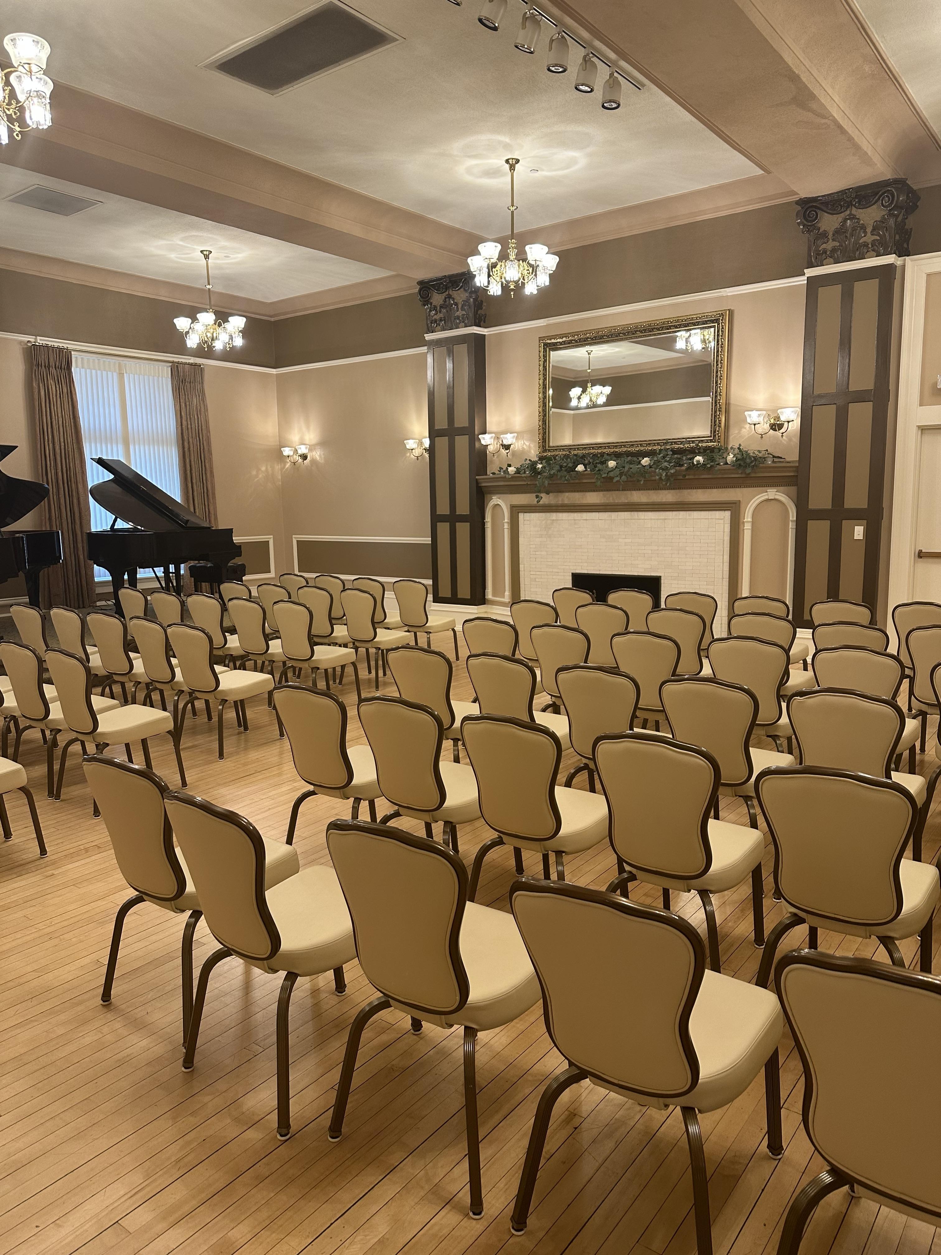 Beautifully appointed with a platform stage, two grand pianos, ornate pillared walls, a fireplace, and a small kitchenette, this charming space is suitable for wedding ceremonies, recitals, receptions, showers, meetings, and more! Our full-day rental rate will give you access to the room from 12pm to 11:30pm on the day of your event.