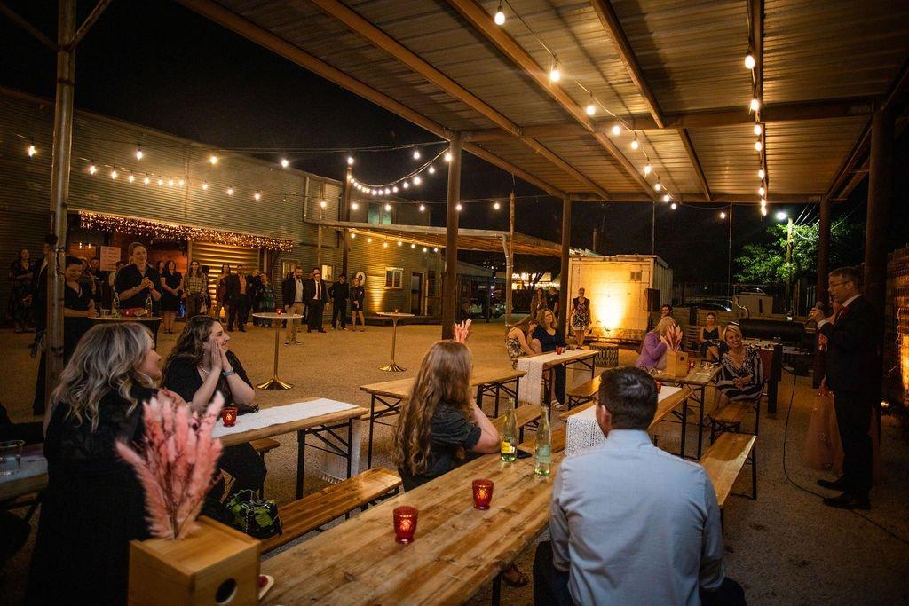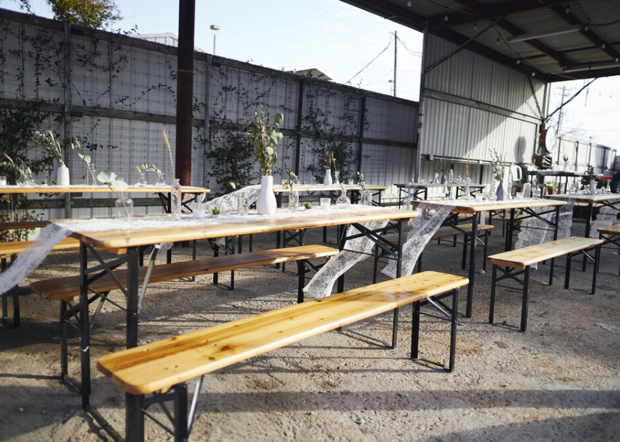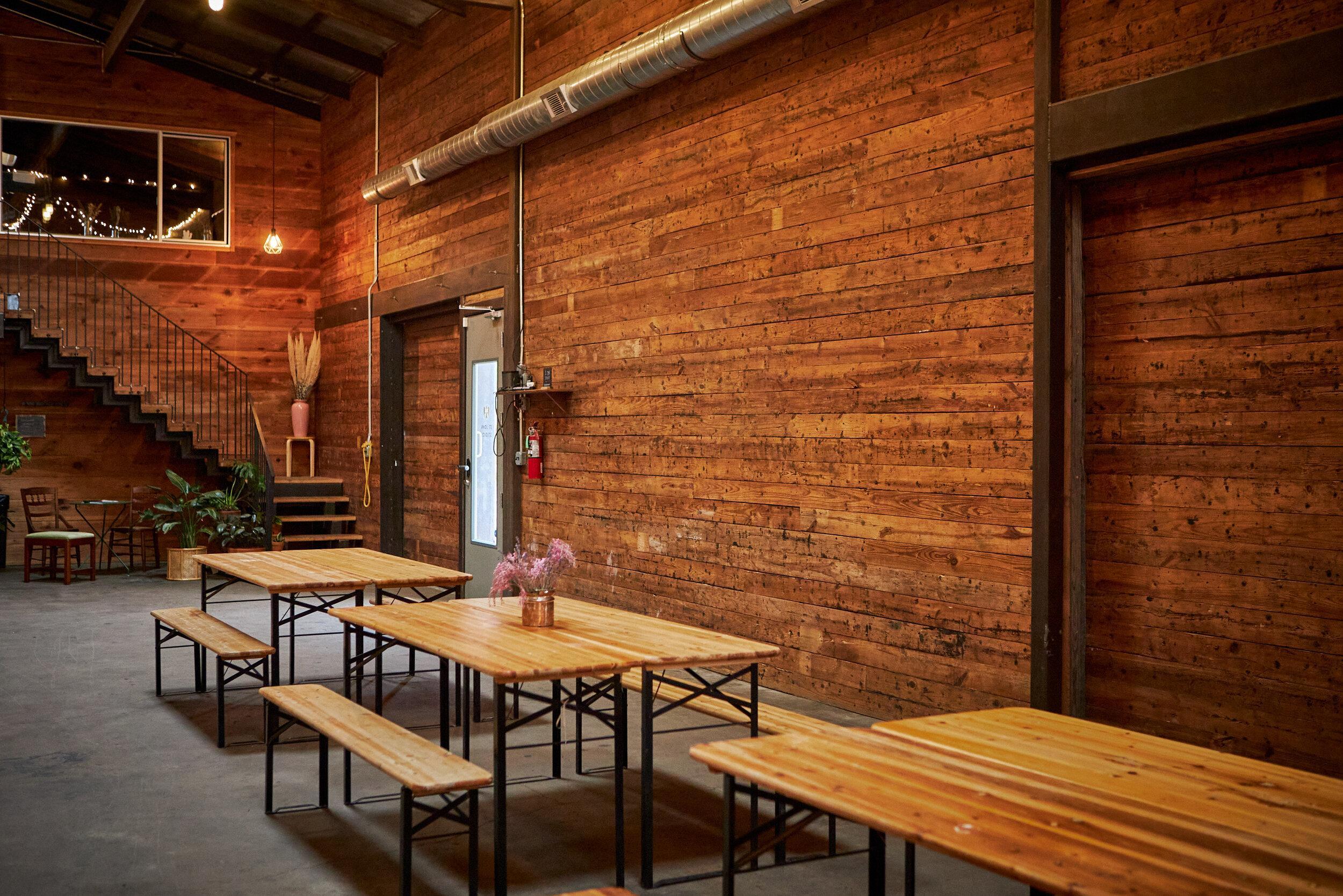 The Shed Bar & Courtyard functions best for fair weather, outdoor oriented events - though renters can combine with The Great Hall for a rain plan. The Shed Bar opens to the courtyard with large sliding doors and can function as a walk-up bar, while the Beer Garden can be used as a lounge area boasting high top standing tables and a service bar.