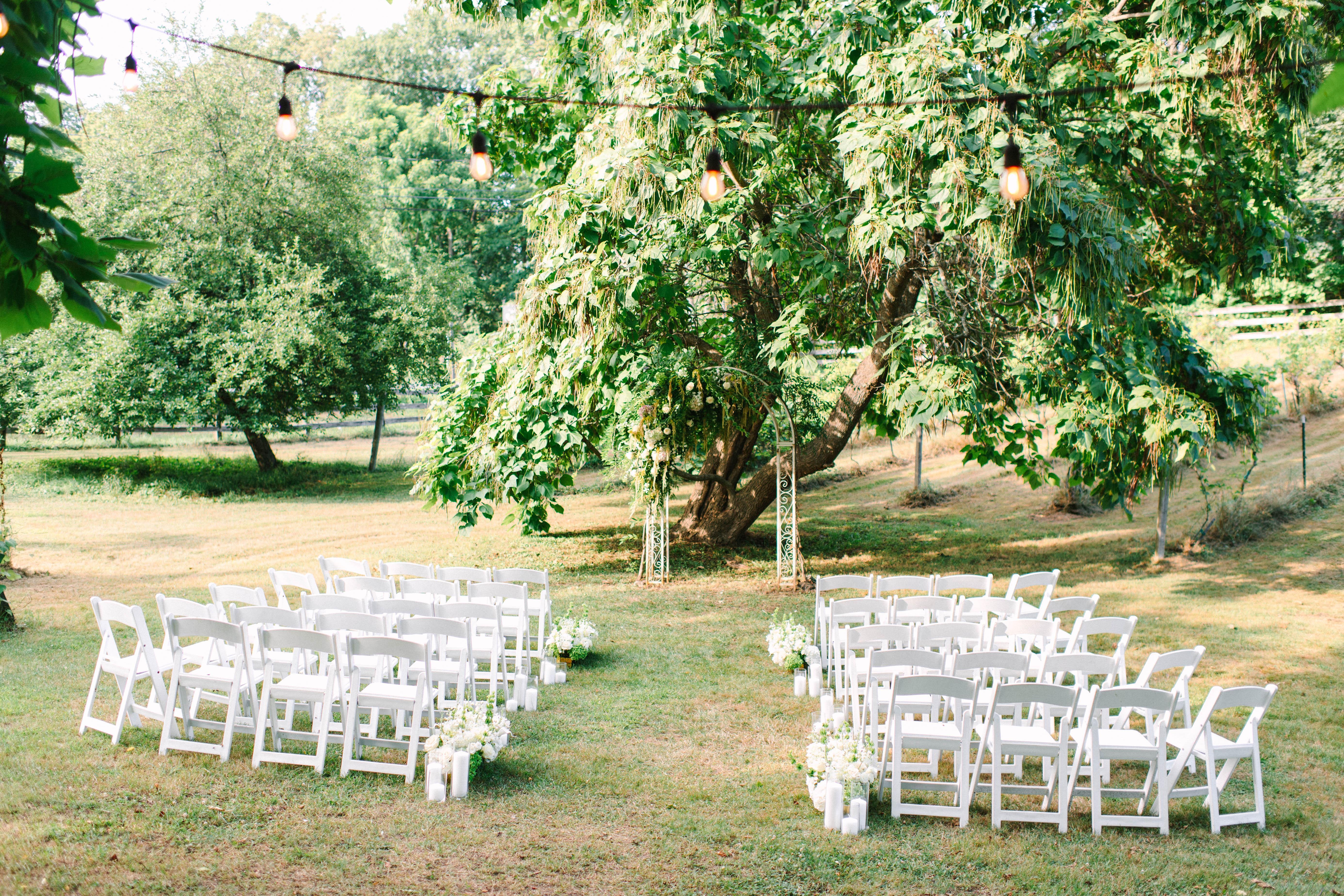 - Cross-back wooden chairs - Tables - Linens and napkins - Antique decor - Bistro lighting - Late-night fire pit with Adirondack chairs - Outdoor cocktail hour - Newly renovated restrooms - Penny top bar - Bridal loft