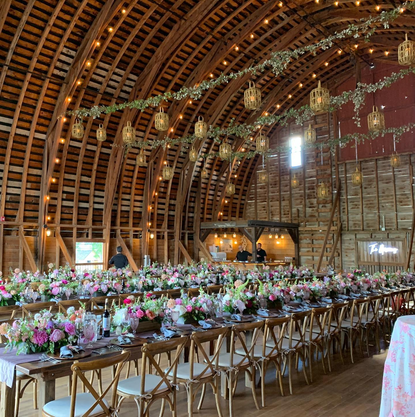 We are an open concept venue, and we encourage couples to make our venue their own. Our package grants full access to the event space (the barn and surrounding lawn areas) to clients, vendors, and guests. Each wedding booked will come with the use of the venue and property for approximately two days, and is great for couples who want sufficient time for proper set-up and tear-down before and after their event. Take time to enjoy these special moments with your loved ones! Facility use hours are from 12 PM-4 PM the day before the wedding, and from 10 AM-11 PM the day of your event. Set-up is welcome and suggested the day prior to the event. Use of our rustic farm-style wood tables and wood benches for up to 120 people will also be included in your package if desired.