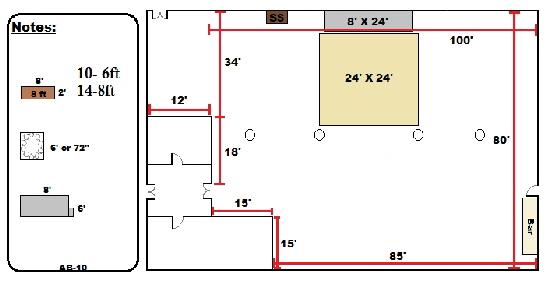 • Clean up • Dance floor • Dressing room • Wheelchair accessible • Security • Bartenders • Ice • Kitchen Access • Tables & Chairs