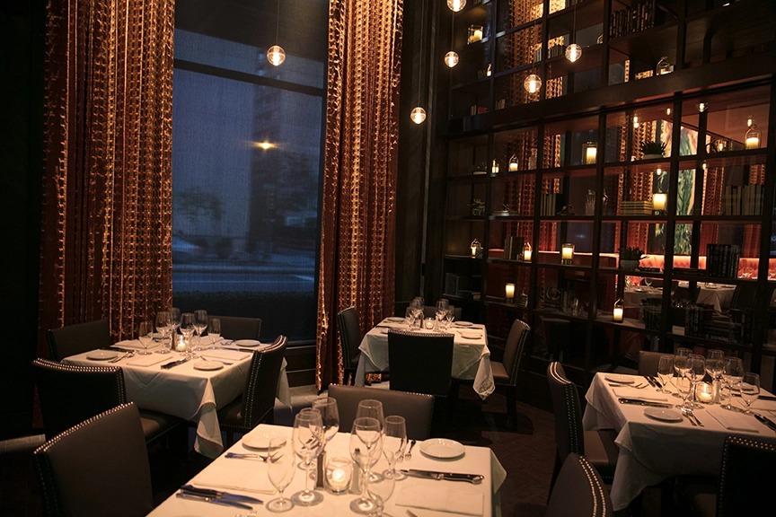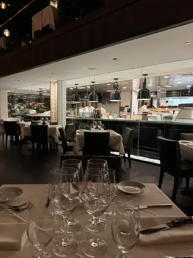 The Kitchen Dining Room at Steak 48 is a bright and airy event space. A defining feature is its stunning wall of glass, which provides a unique and engaging view of the bustling, working kitchen. This elegant space offers a luxurious and spacious environment for your guests, combining sophisticated dining with the dynamic energy of the culinary team in action.