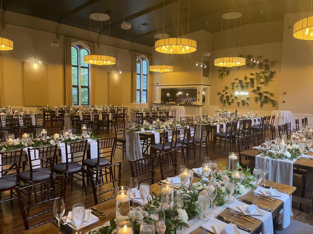 Steeple Hall offers a one-of-a-kind, timeless space to host your friends and family. Experience a truly classic, unforgettable New England wedding that will leave your guests feeling nostalgic and romanticized. Marvel in the beauty of the cathedral ceilings, become enamored by the stained glass details, and dance the night away underneath the ball room lights.