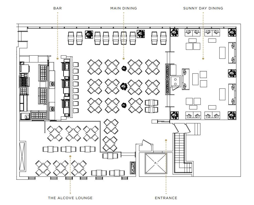 • Ideal for: Seated Brunch & Dinners • Located above Main Dining & elevated for the ultimate views of the Highline and Hudson River • Minimums apply given time of year & service requests