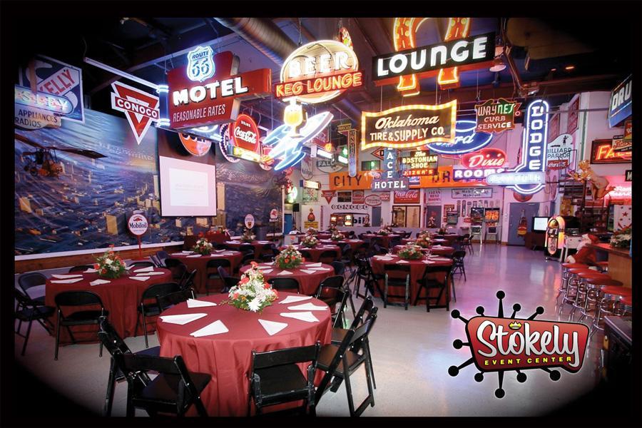 The Stokely Event Center has solidified its place as one of Tulsa’s most unique venues. With over 300 nostalgic Tulsa signs, vintage Route 66 memorabilia, old oil and gas signs and old advertising prints decorating the venue, any event you may have is sure to be memorable. Whether it’s a wedding event, birthday party, class reunion or corporate event, your special day will be absolutely unforgettable at the Stokely Event Center!