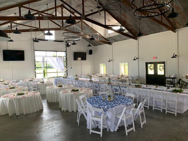 • We offer a beautiful barn with great views from both porches. This barn is capable of seating 200 guests, includes a spacious prep kitchen, restrooms, and a designated room for food/caterers. • Our Red Barn is a smaller barn with a 60-guest capacity. This location also includes a prep kitchen, restrooms, and a great open space for any event. • The smaller white barn is our newest party barn. This location seats 35 guests. It also has utilities equipped for easier party prep such as tables, chairs, air conditioning, and a spacious refrigerator. It’s the perfect choice for any birthday party or small event! Restrooms are located at the end of the Red Barn.