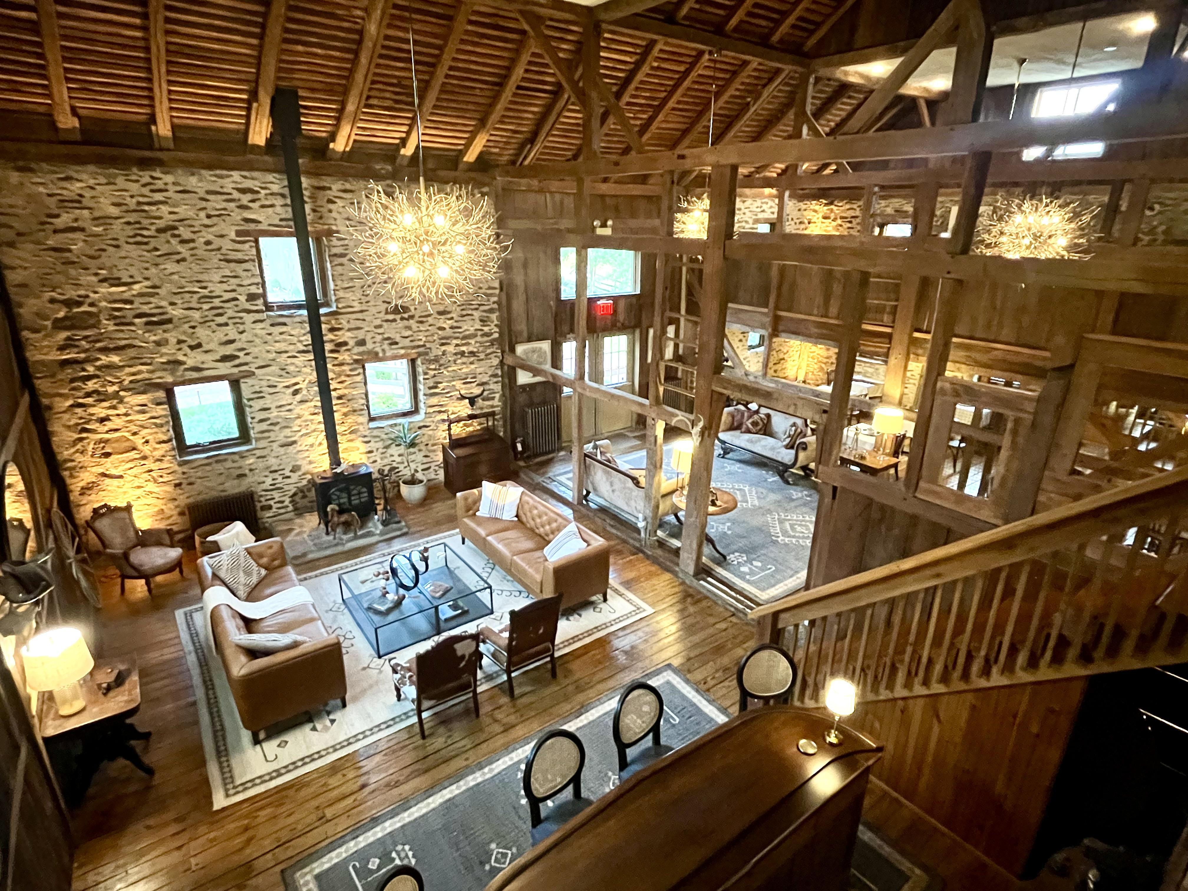 -Vaulted ceilings in both venues -Dramatic chandelier -Authentic 225 year old barn with exposed beams and dramatic stone walls -9 recently updated king en-suite bedrooms -Fully equipped kitchen available to guests -Dining Room with exposed stone walls -Music Loft -Poker Loft