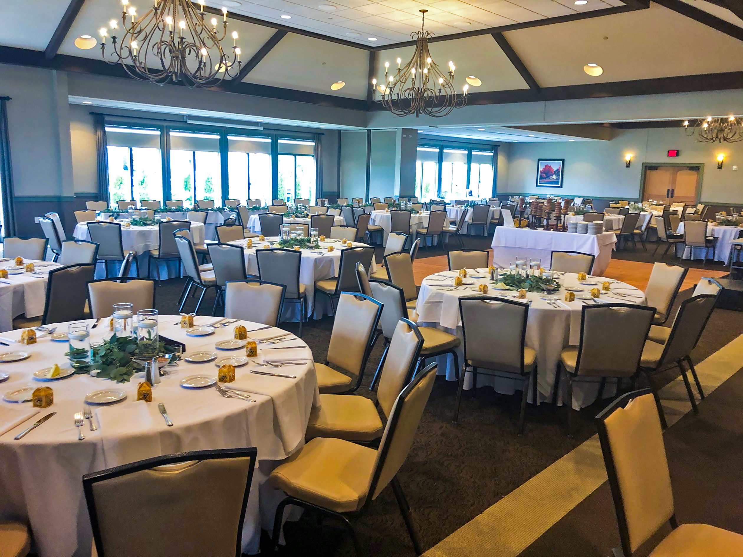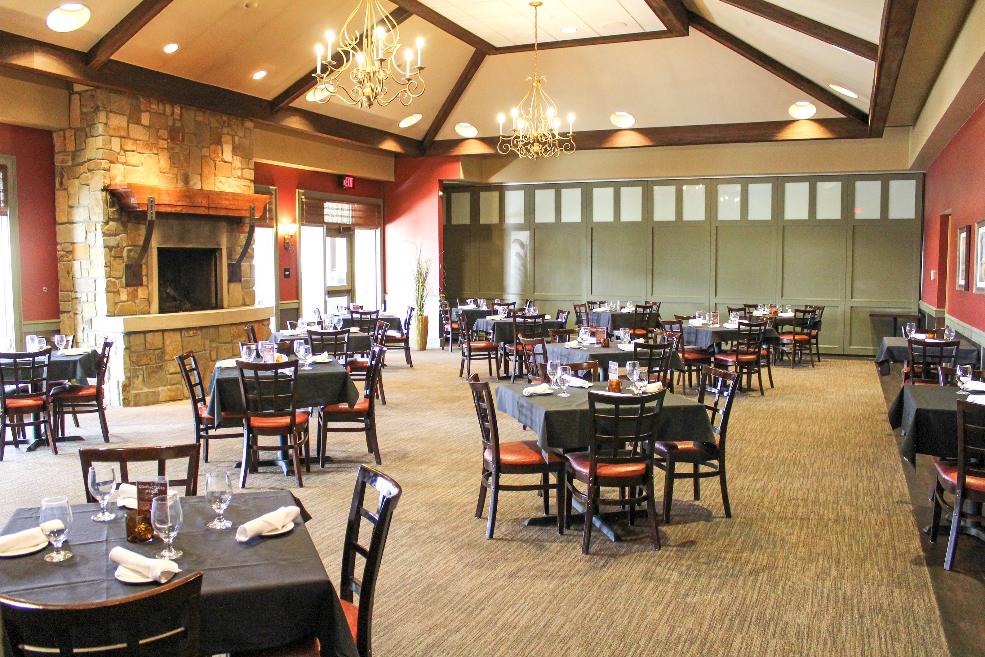 The Diamond Ballroom is StoneWater's largest space and includes all of our banquet rooms. The ballroom features a beautiful stone fireplace, large windows with views of the golf course, and a great private patio next to the picturesque waterfall for outside enjoyment. With a built-in bar, this space is perfect for any large party or gathering.