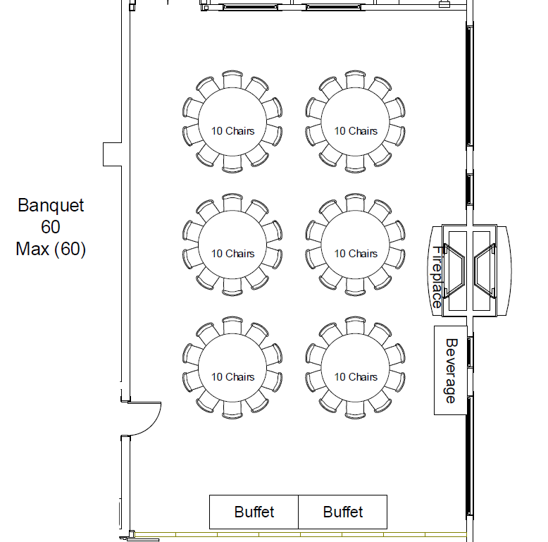 The FireRock Room is a cozy space with a beautiful stone fireplace and offers great natural lighting with large windows overlooking the golf course. This room is the perfect location for rehearsal dinners and showers.