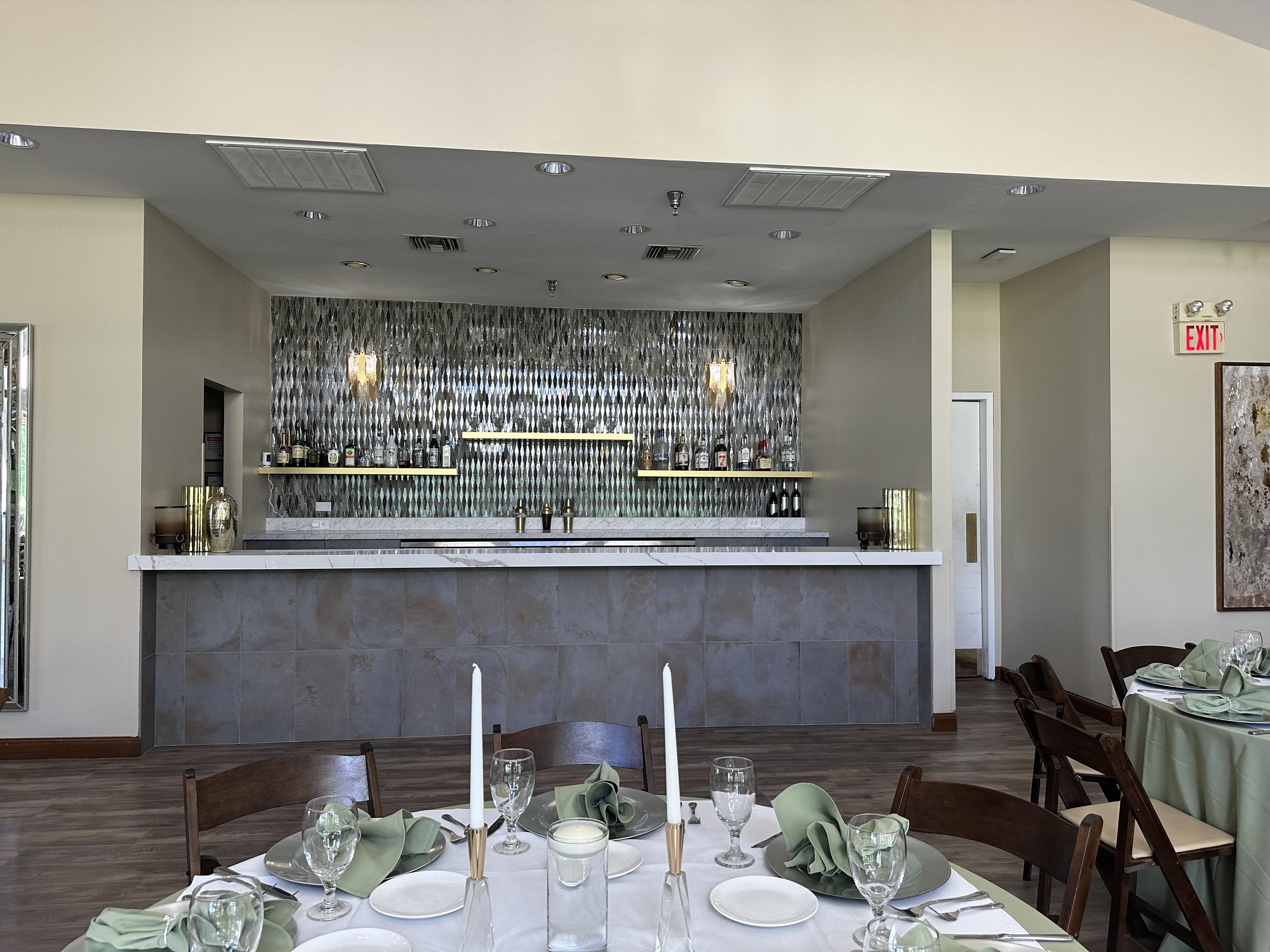 Welcome to The Newly Renovated Venue at Stonewolf Golf Club & Event Center! Our Venue is a redesigned masterpiece, capable of handling a wide range of events. Boasting a large event space and a capacity of up to 200 guests, we are honored to host any event you have planned. The Venue has a reimagined bar, a dance floor, and plenty of room for a band or DJ to play. A covered back patio is also available for cocktail hours and socializing with loved ones all night long and comes equipped with outdoor heaters and lounge seating. Looking for the perfect intimate affair? Look no further than our beautiful Fireside Room! The Fireside Room can accommodate up to 75 guests. This space boasts a beautiful bar, two 85" Samsung Smart TVs along with a gorgeous white brick fireplace. The Venue provides different wedding packages to ensure that you don’t have to break the bank for one of life’s milestones. Our staff is also dedicated and will work hard to make your special day perfect!