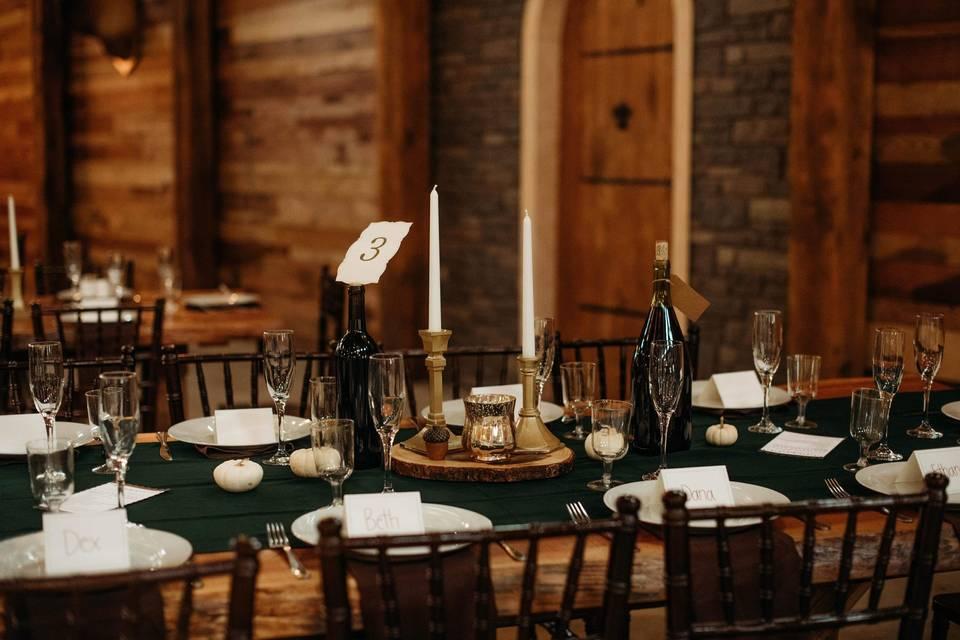 Stoney Creek Castle is made out of 8000 square feet and can accommodate up to 300 guests with plenty of room for a dance floor. Every inch of the Castle from the entrance door, bar, wooden plank walls, black walnut tables, and rustic beam chandeliers to King and Queen chairs was handcrafted by the owners, using all reclaimed, local materials. This structure features castle-arched windows that provide a lot of natural light, an indoor fireplace that is perfect for winter weddings, and a bridal suite located in one of the towers. Stoney Creek Castle is a perfect venue for your fairytale wedding!
