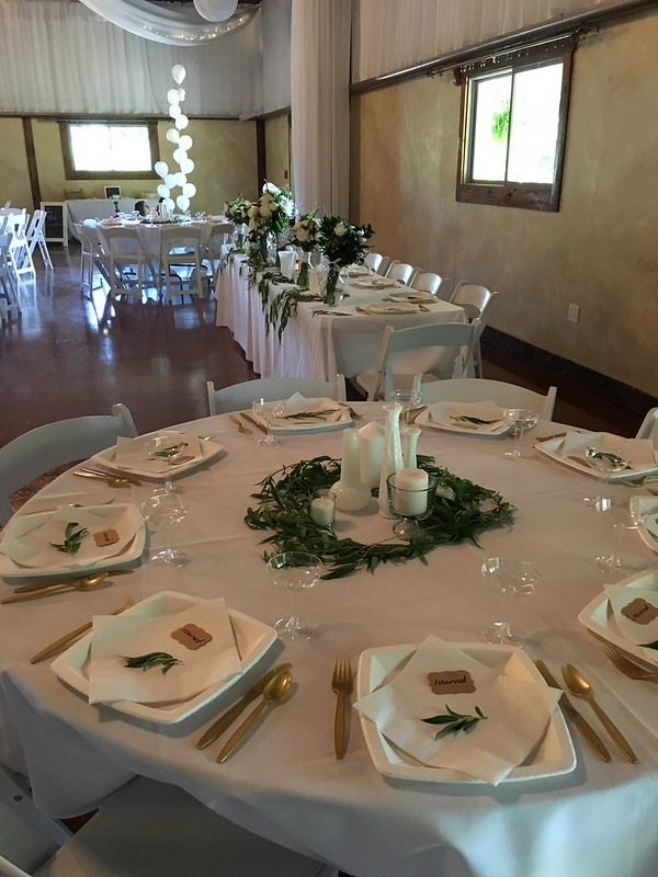 Nestled in the scenic Vinland Valley it is a modern building with antique charm. From the old barn tin outside, barn wood trim and accent wall, to the delicate cloth bunting and modern lighting it suits all your needs.