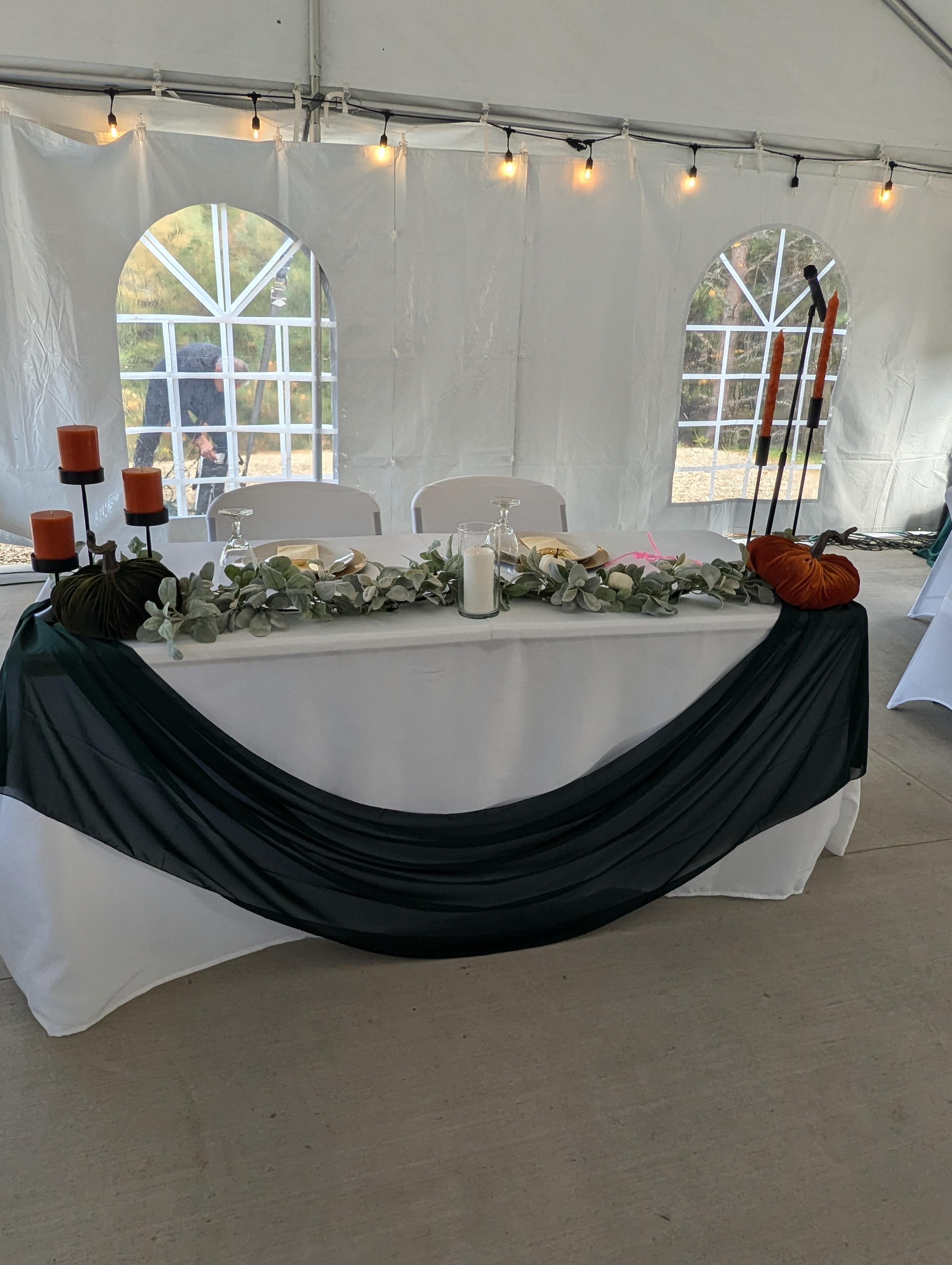 Round and/or rectangular tables, chairs, large tent, arch, arbor, and other wedding furnishings