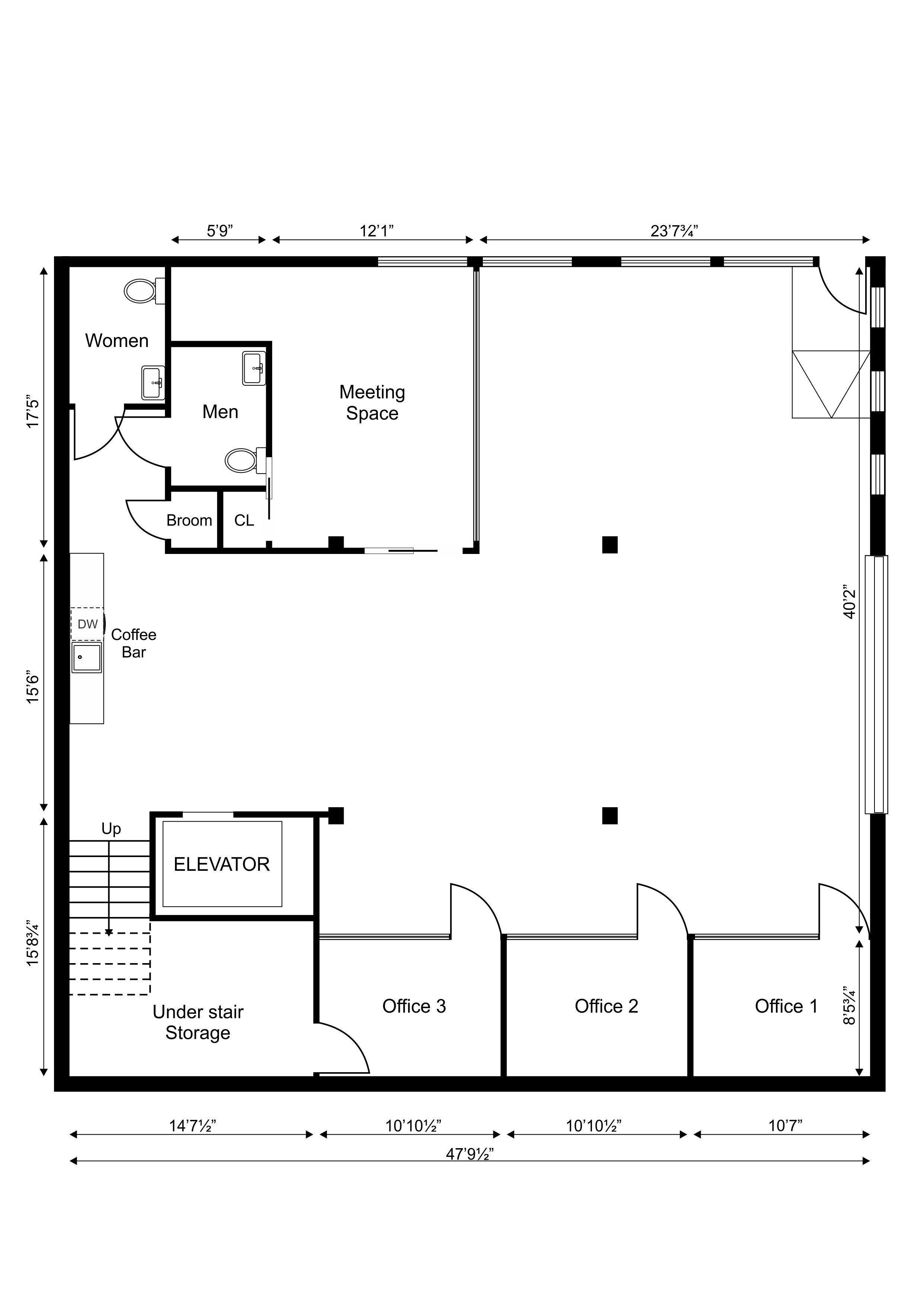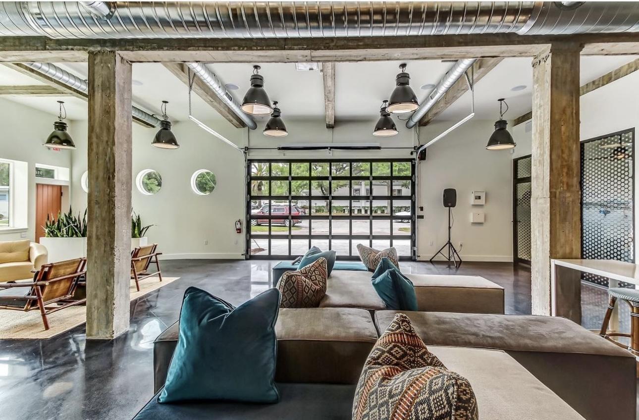 Modular Cloud Sofa for custom seating arrangements Rolling industrial doors & concrete beams 11' conference table Overhead projector with Apple SharePlay Two ADA Guest Restrooms Two Hightop Cocktail Tables Surround Sound System Music (via Pandora, Spotify, and Apple) ADA Elevator