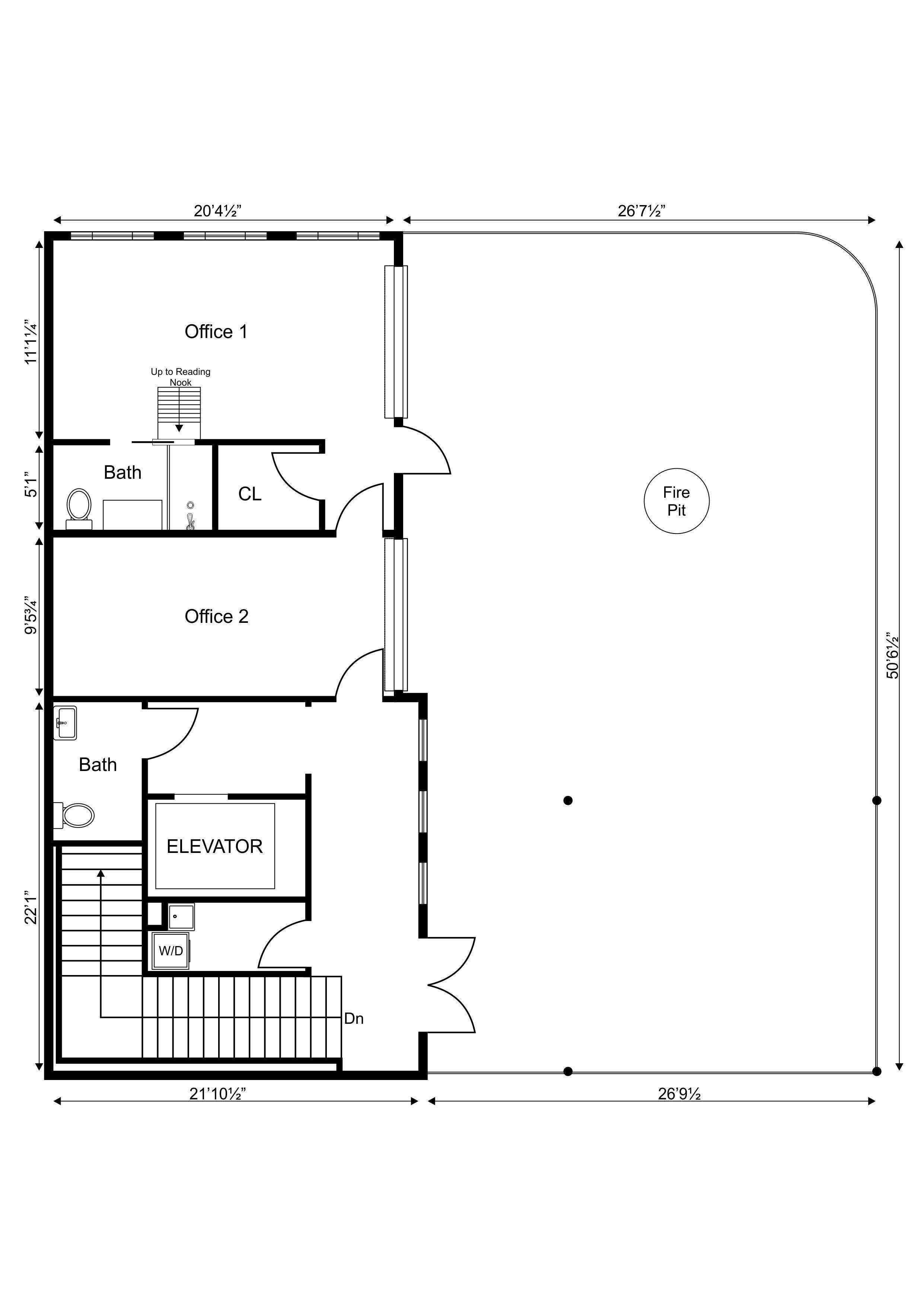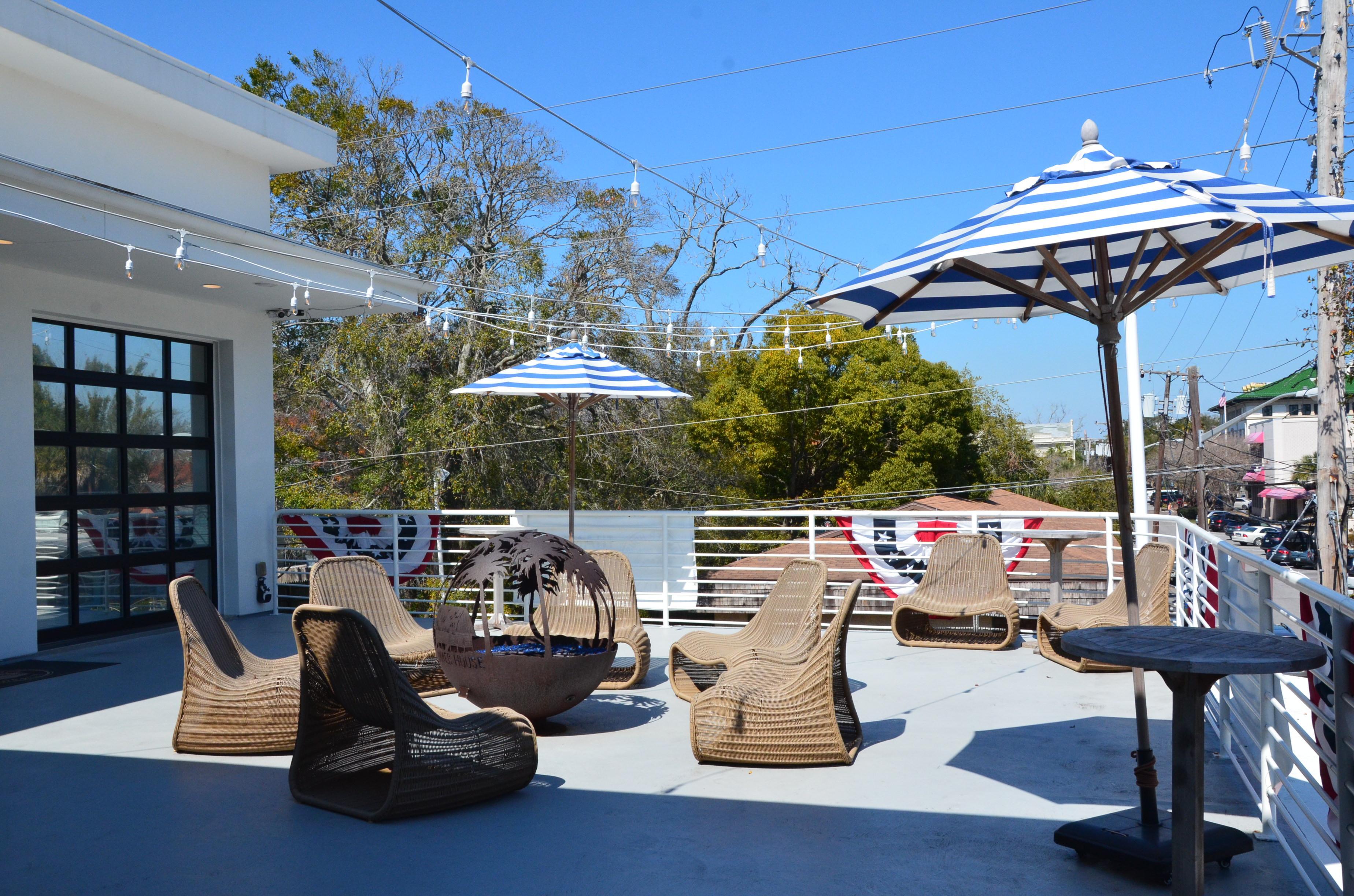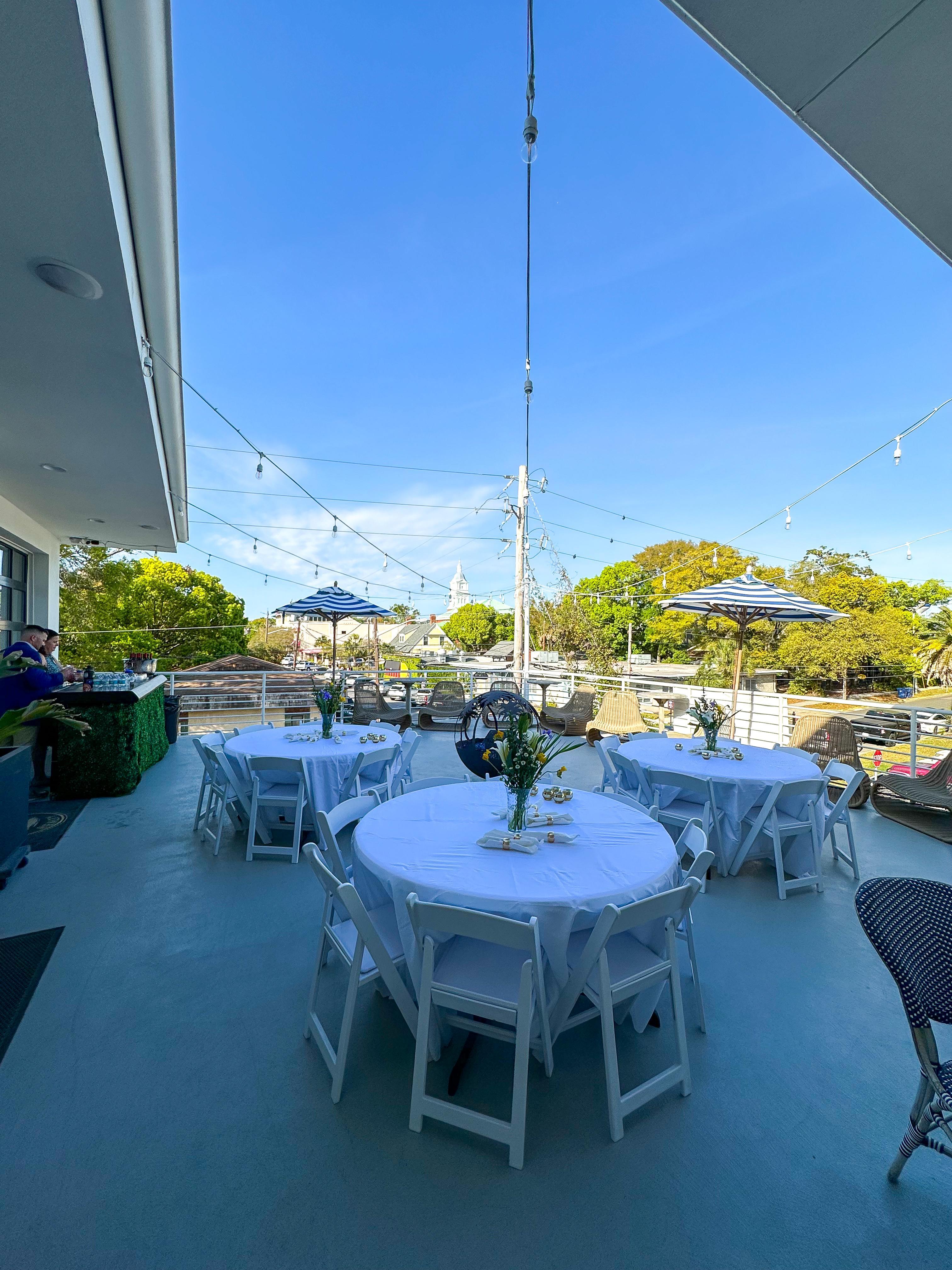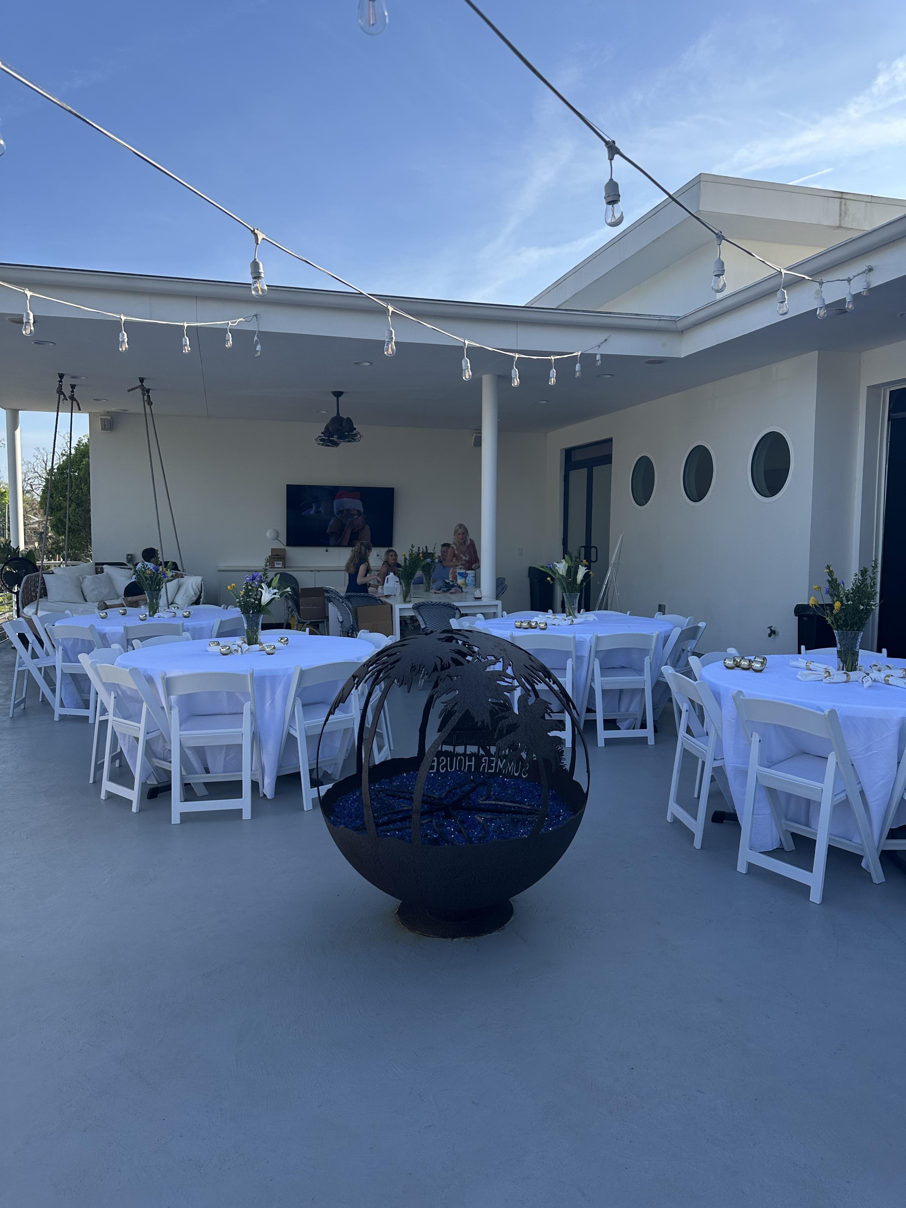 (3) Hightop Cocktail Tables (10) Bistro Chairs Iconic Bed Swing Rolling Bar (1) Rolling Cooler Outdoor TV Stationary workspace (2) 4x8 Rectangle Tables Fire-pit ADA Guest Restroom Access to our stairwell and elevator
