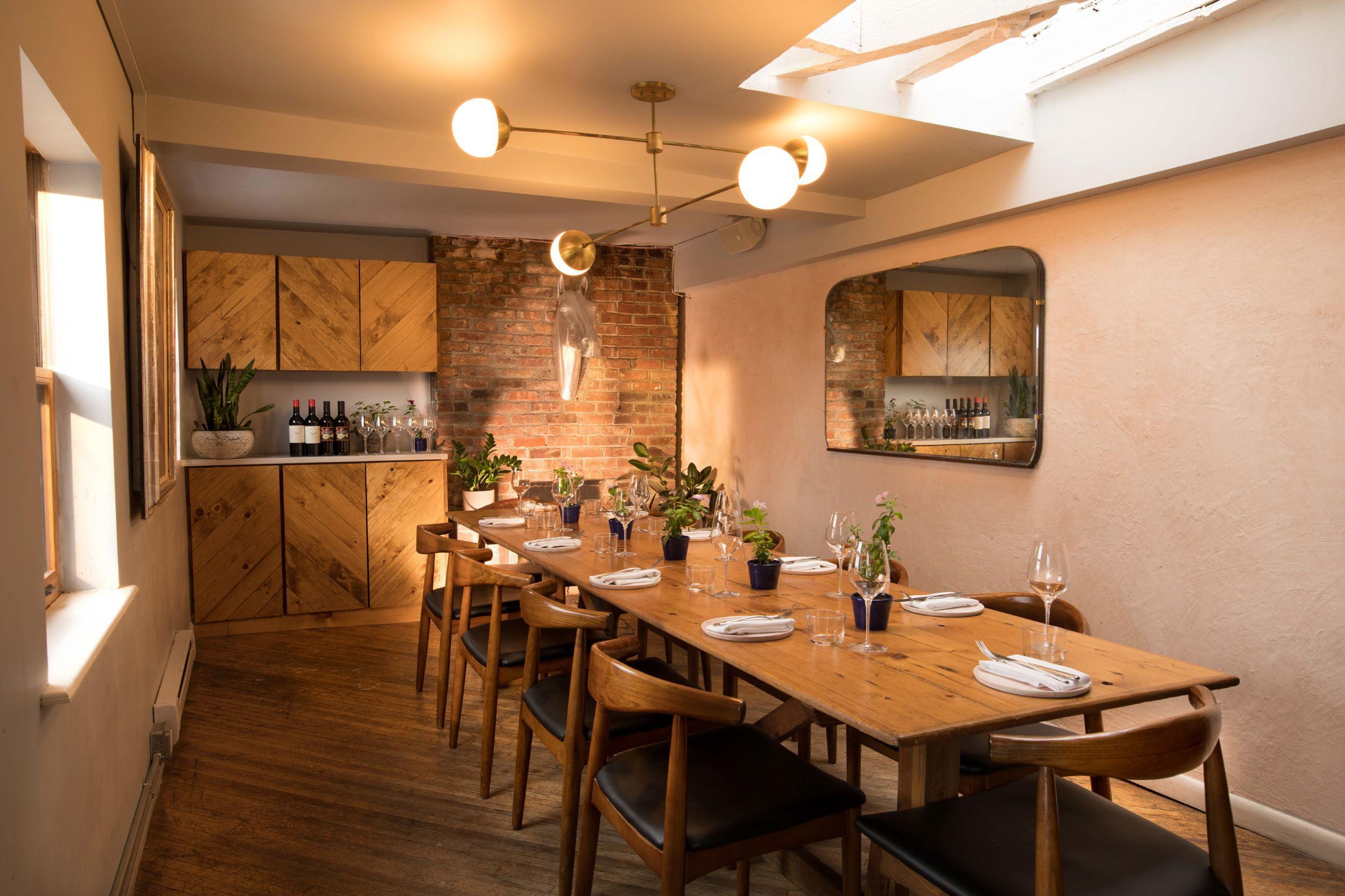 The ground floor Bar Room + connected Kitchen area is the perfect place to hold your cocktail hour prior to heading upstairs for the seated meal. The Bar Room can be used as extra seating during your buyout for dinner service, or can remain as a standing cocktails-only area for the duration of the evening.