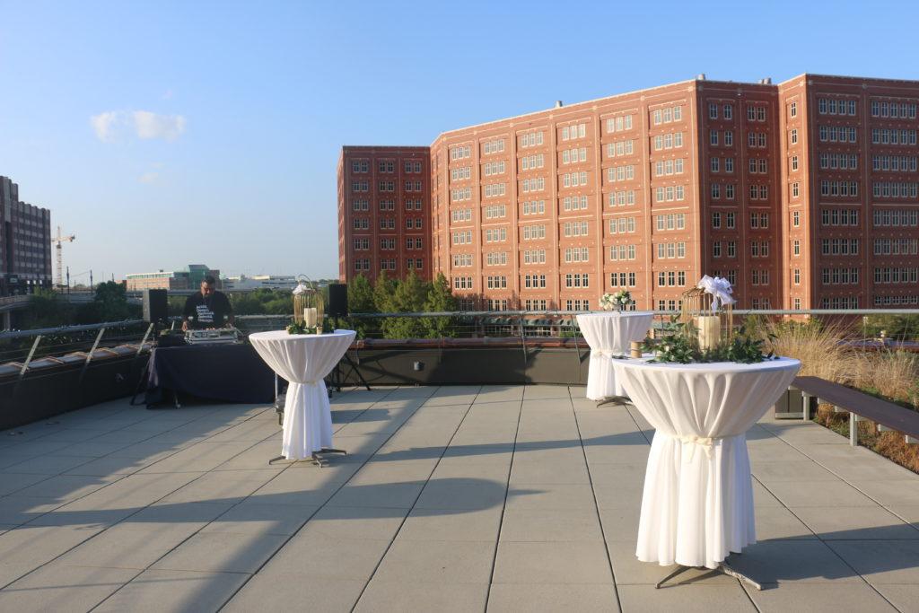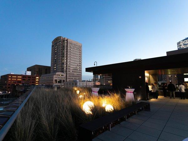 The Rooftop Terrace offers beautiful views of the bayou and Downtown Houston