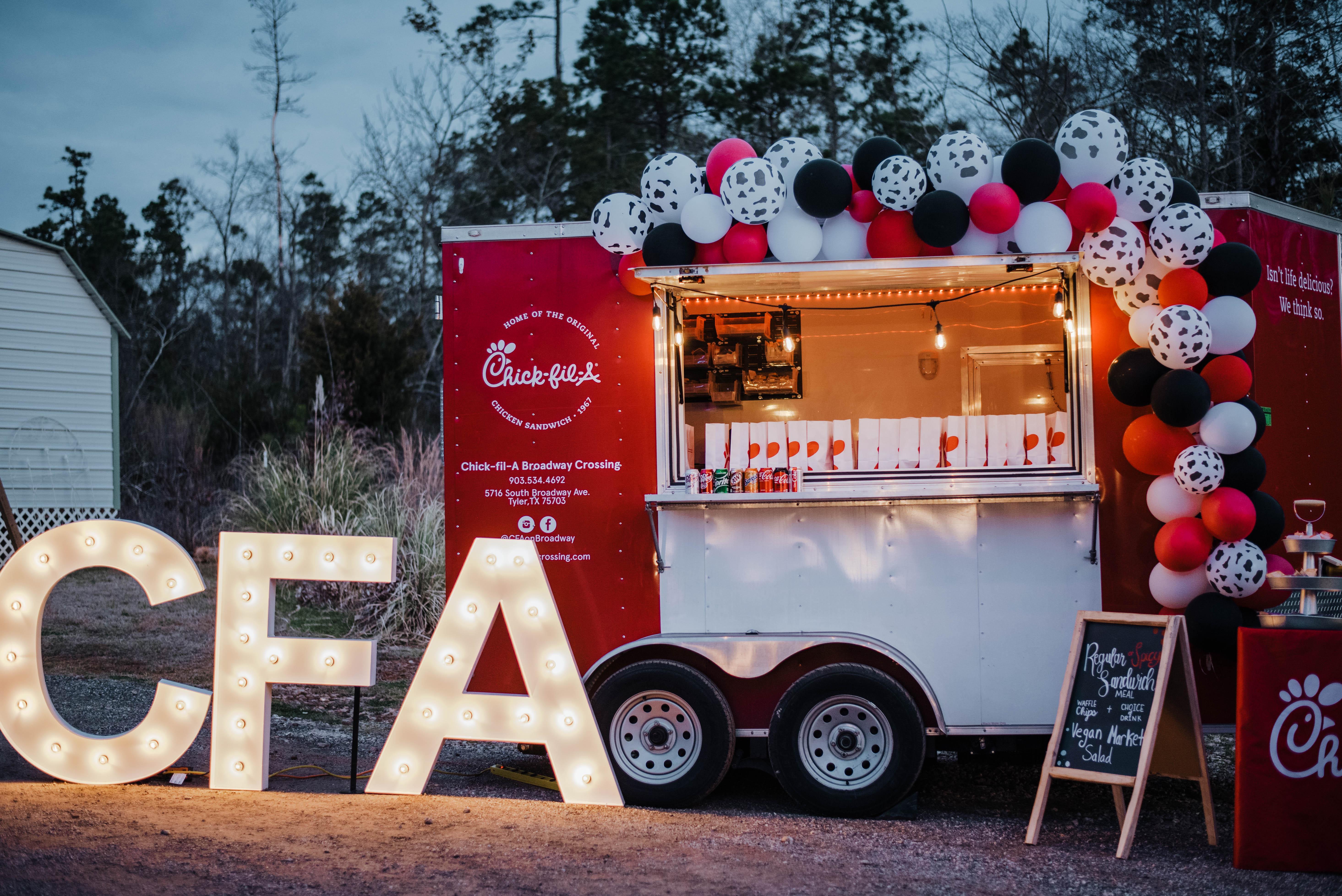 - Outdoor bar - Outdoor buffet - Outlets for neon signs & backdrops - String lights overhead - Large fan for hot days - Food Truck Area