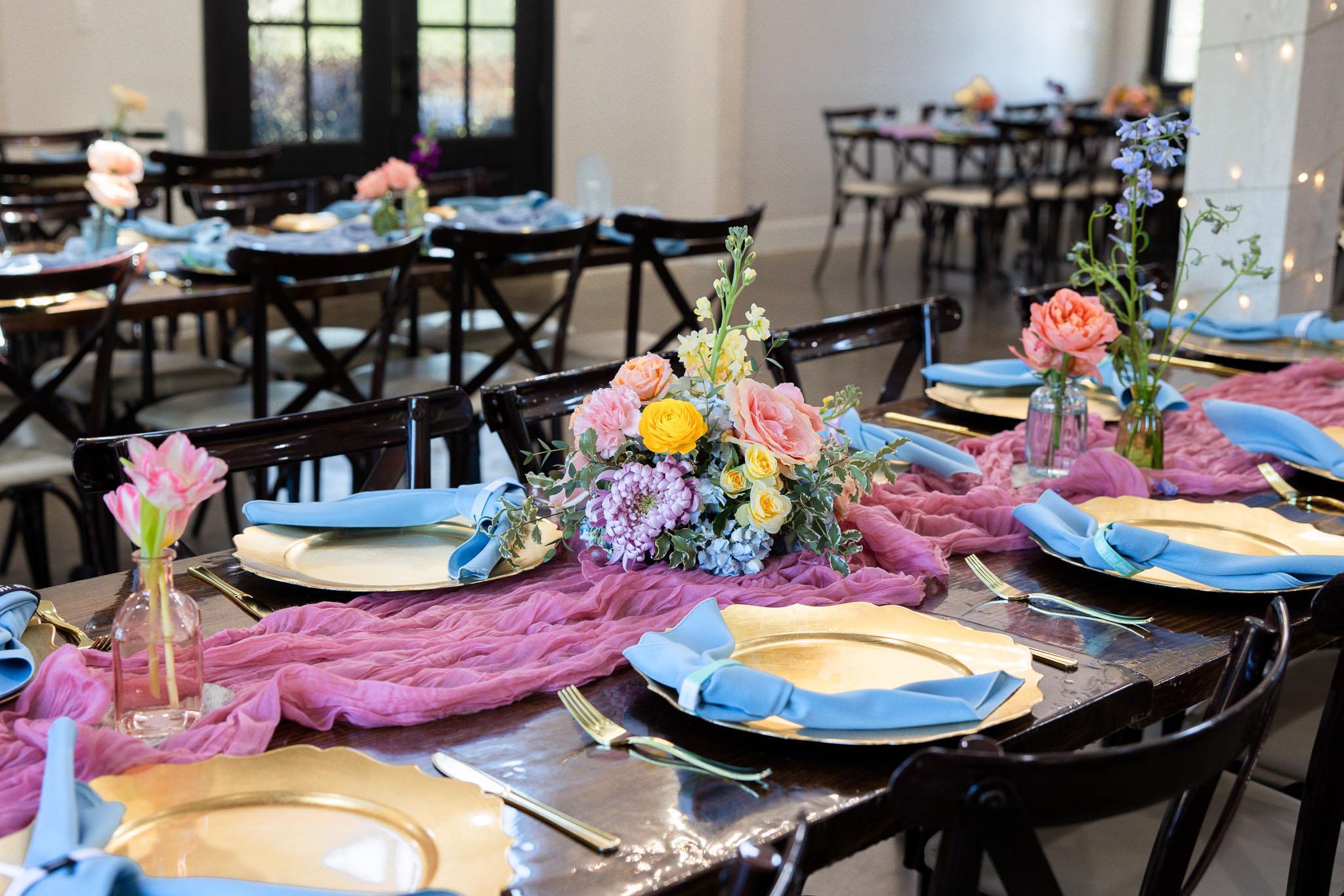 - Dinnerware (acrylic) + Charger + Linen Napkin