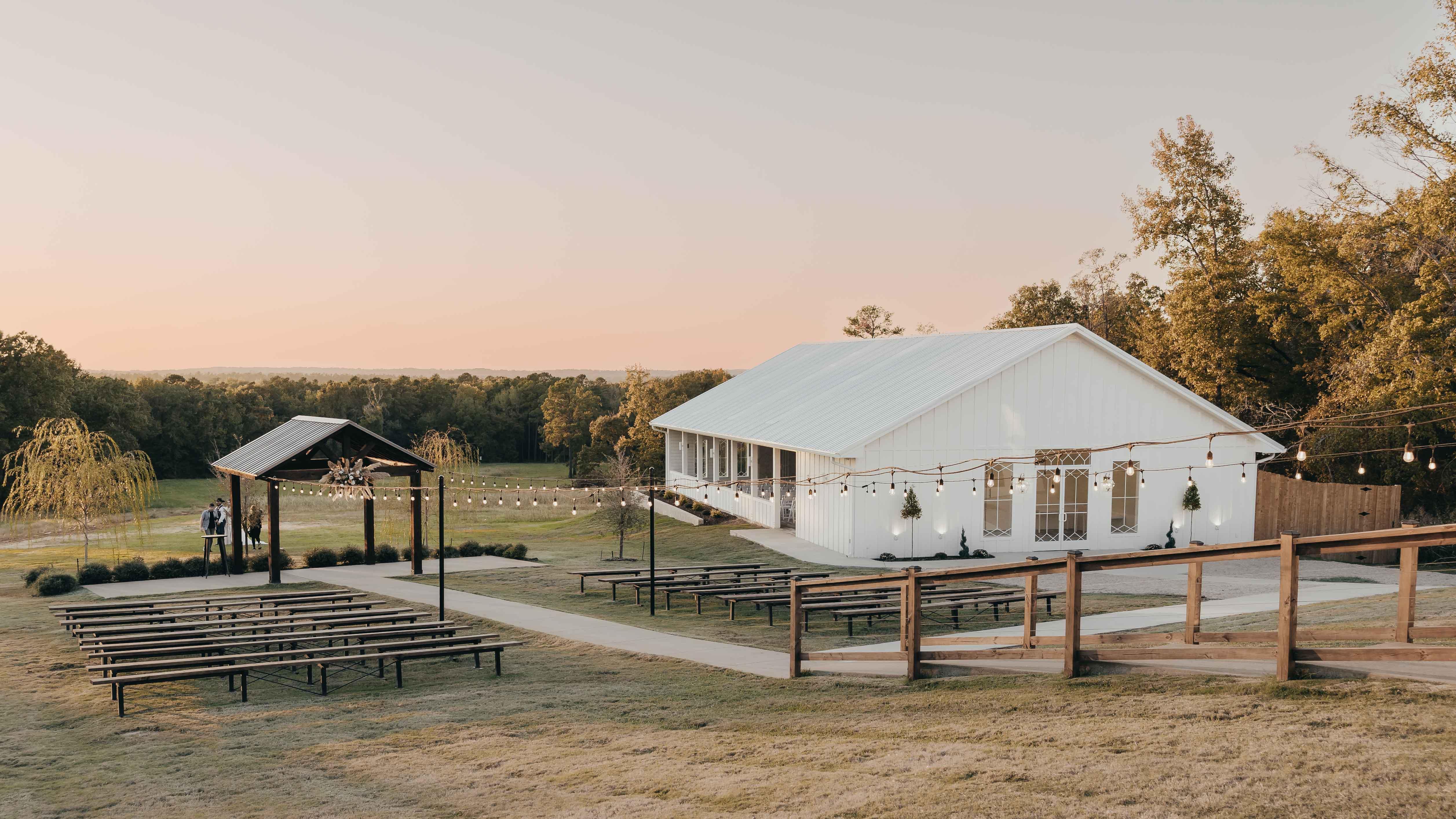 Wedding Venue Tyler, TX You’ve officially found MORE than a building… A venue that WOWS… without the rustic barn look. A Breathtaking open-air chapel + scenic views + a timeless reception space that feels effortless from “I do” to last dance. The perfect mix of convenience & charm. Feels like a destination... but just minutes from Tyler, TX hotels & restaurants. A 5-star team that actually has your back: Your wedding day runs smoothly with expert support + a trusted vendor list. No time to plan? We’ve got you: Our all-inclusive packages handle the details for you. Decor & planning made simple (and affordable!): Use our thousands of included decorations + online tools to make your wedding look custom…. without breaking the bank. A stunning venue at a price that makes sense: Rentals are $2,900-$6,500, depending on your date. Visit our website to: See Pricing, Available Dates, and Book a Tour