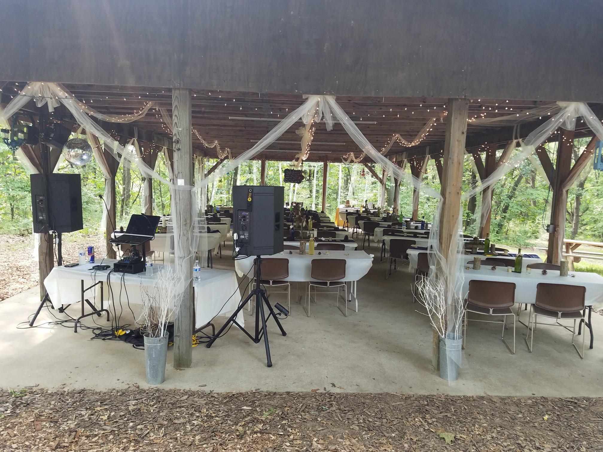 The Upper Pavilion offers a quiet space tucked into the woods with picnic table seating for 80-100 people. This space has interior lights for night rentals as well as power outlets. The pavilion can be rented with a nearby firepit for campfires. The pavilion is available for day or weekend rentals. Great for an auxiliary space for weddings, family gatherings, birthday parties, meetings or retreats.