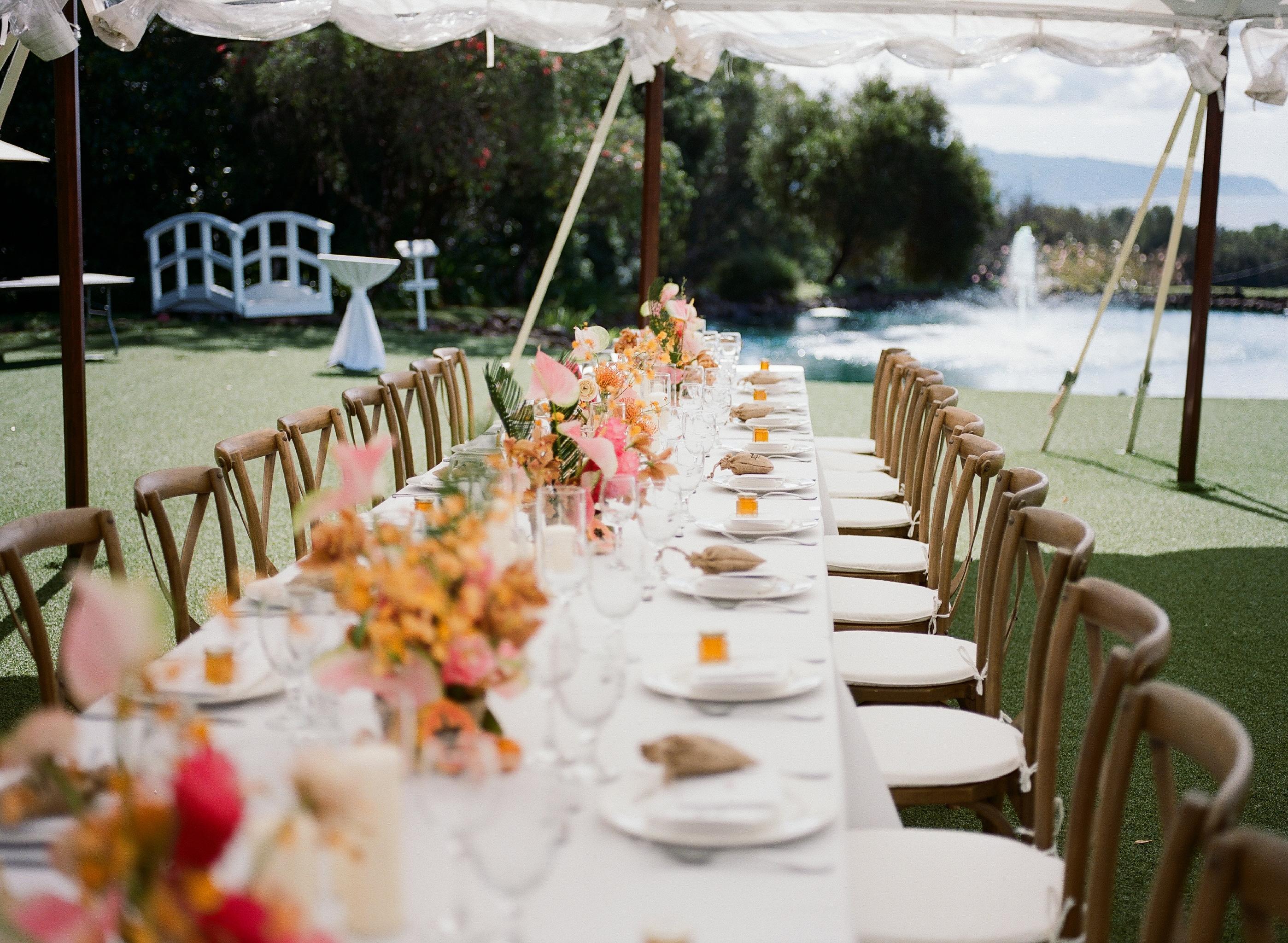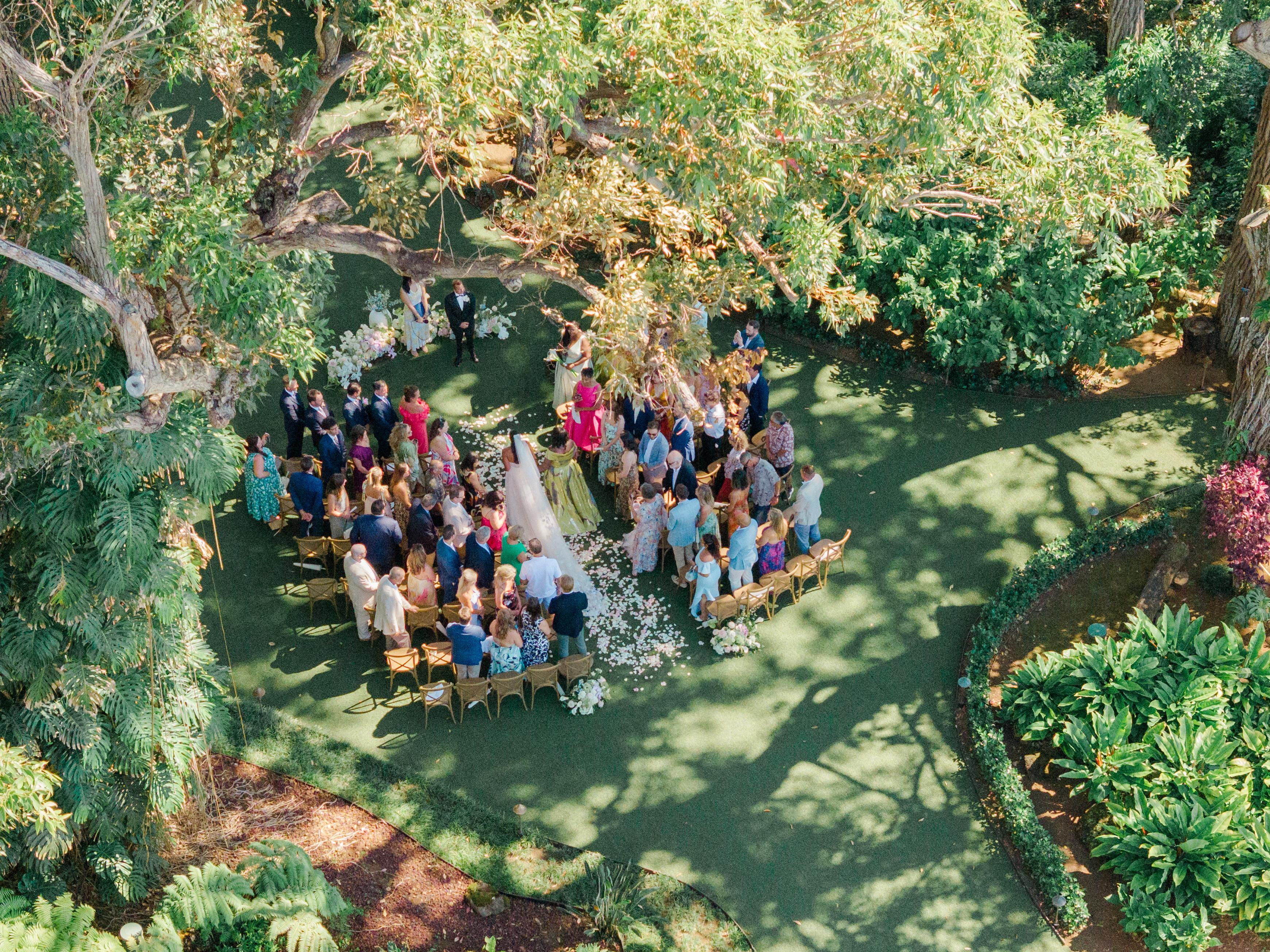 Sunset Meadow is our largest venue at nearly five acres and is home to our world-famous eucalyptus tree. The Meadow offers sweeping ocean and mountain views across the entire northwest side of the island. This versatile space hosts wedding ceremonies, lawn games, pony rides, and a variety of other activities. Most recently, we’ve added a newly planted lychee orchard with 104 trees, bringing even more beauty and abundance to the setting.