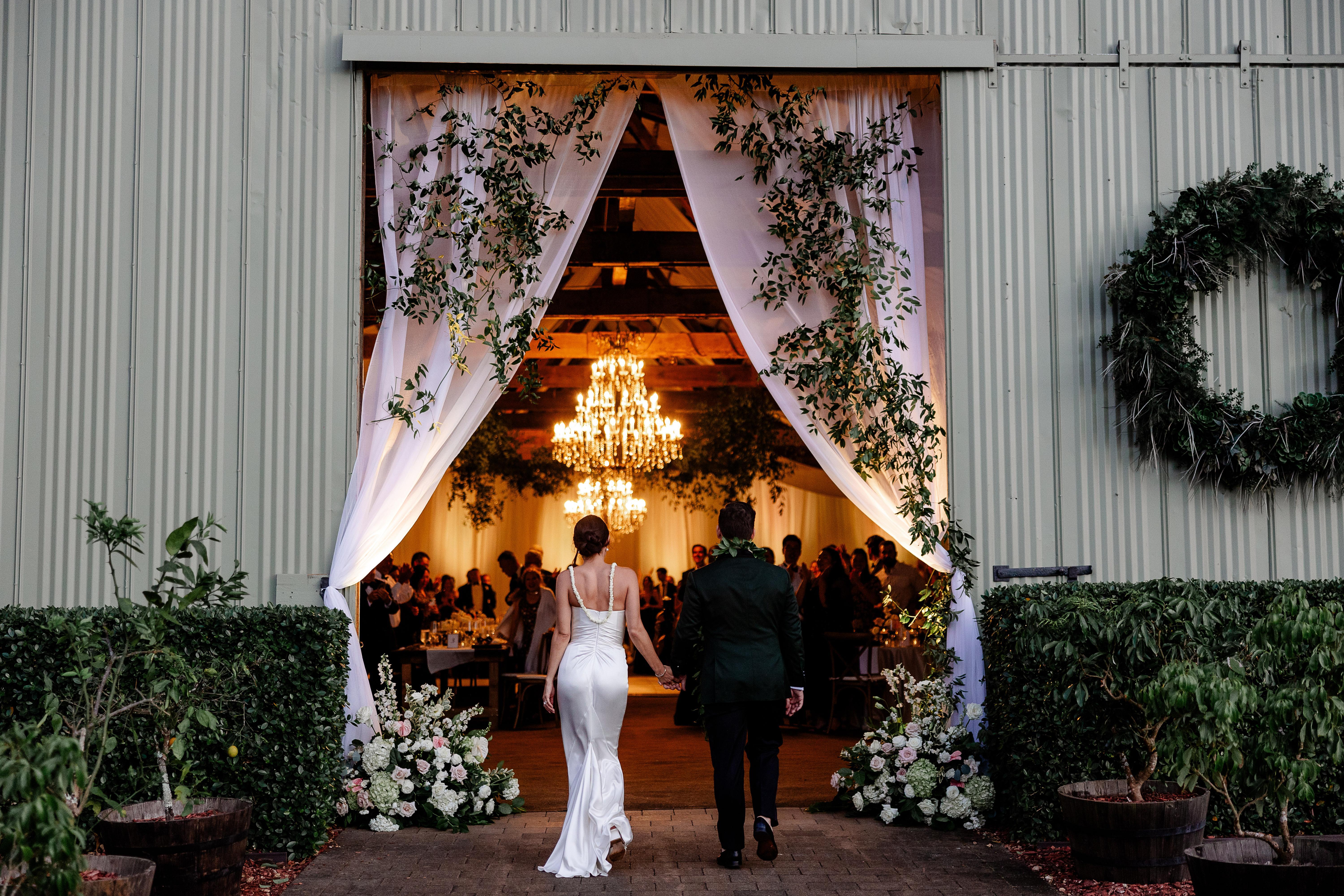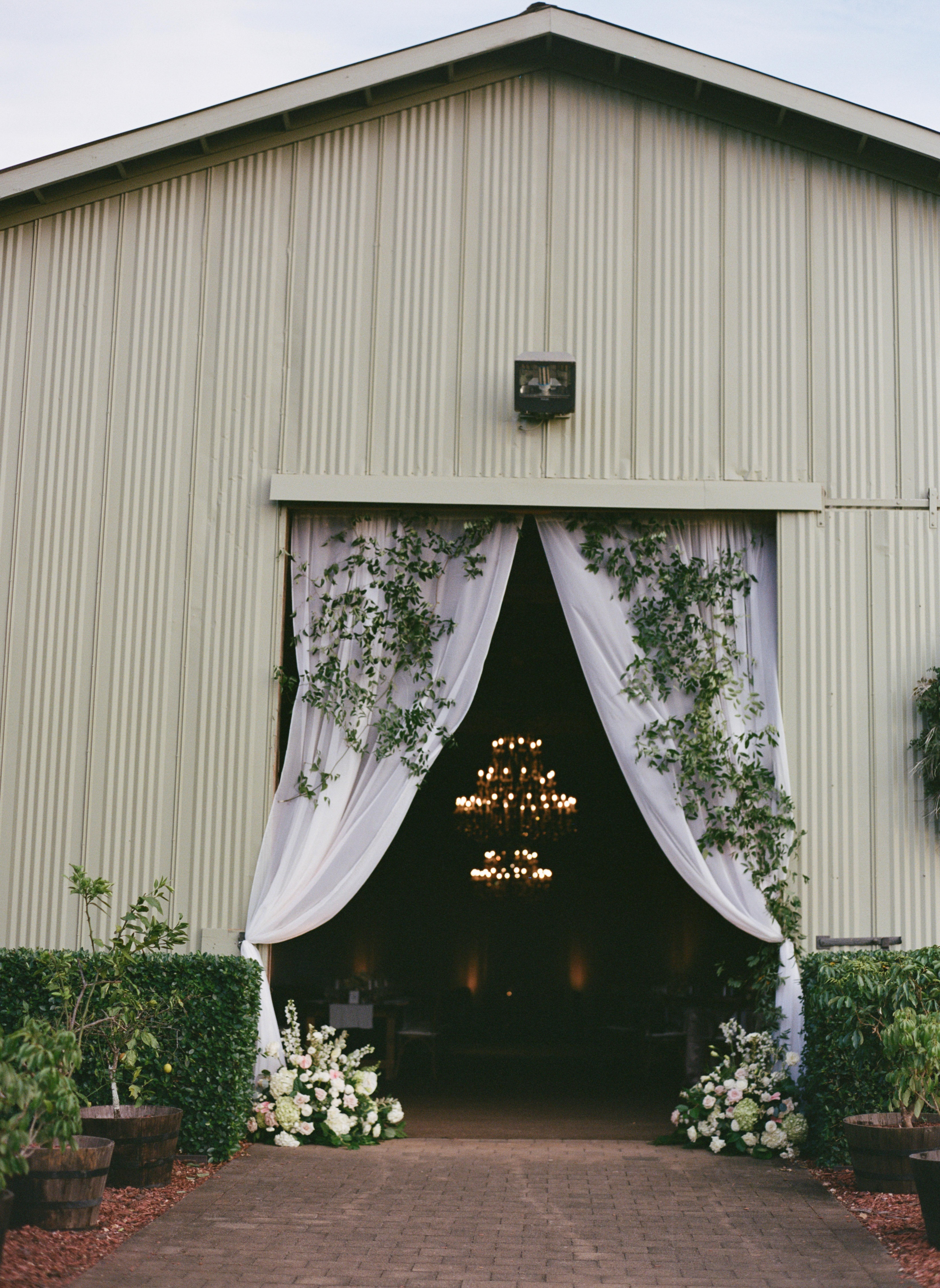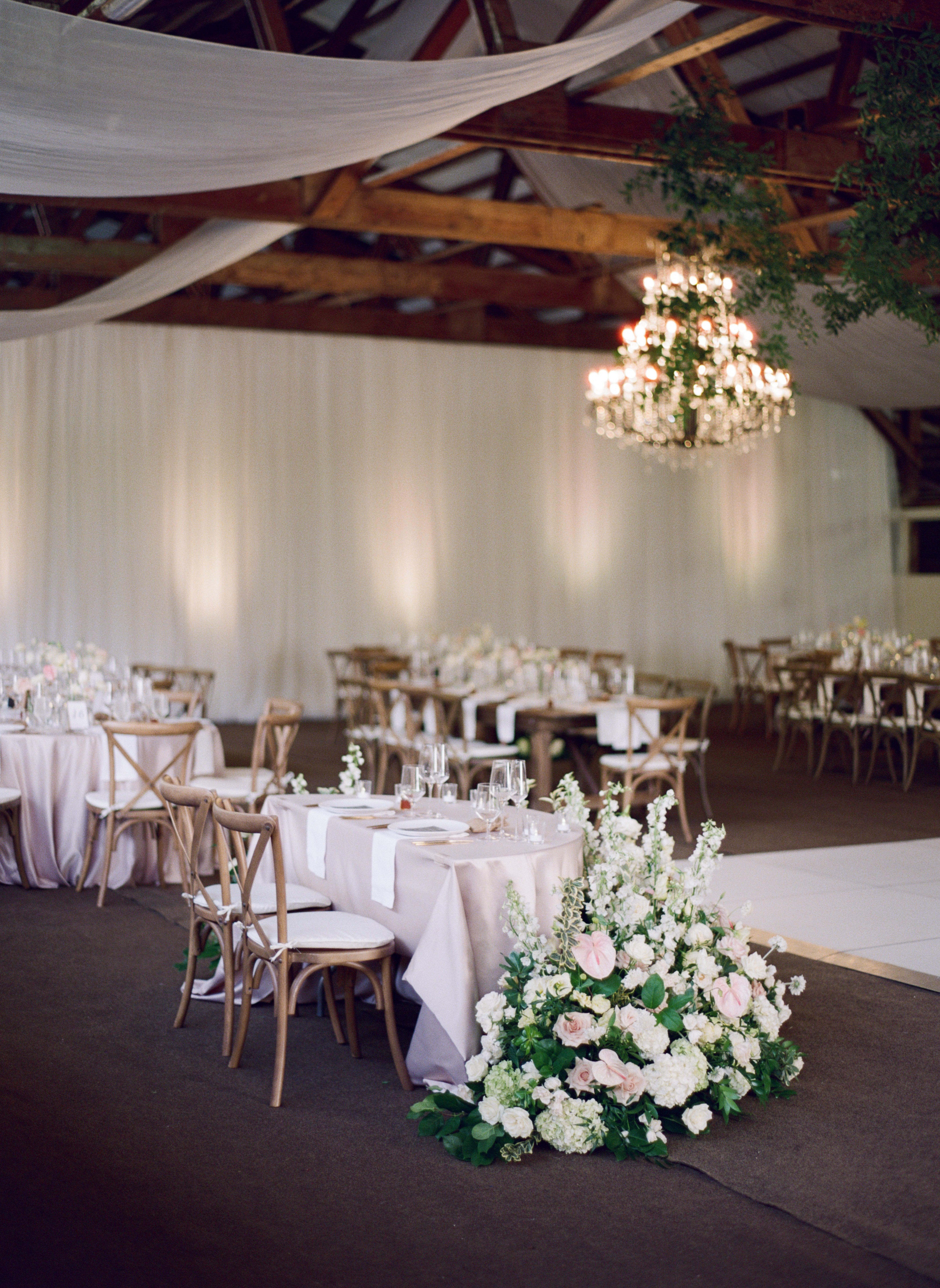Sunset Stables is our indoor venue at Sunset Ranch and provides approximately 9600 square feet of space. It has large barn doors on both ends, white walls, and three large crystal chandeliers. The venue is easily partitioned with elegant drapery to accommodate a variety of event sizes and set-ups. Coming in Q1 2026, Sunset Stables will have newly installed hardwood flooring throughout.