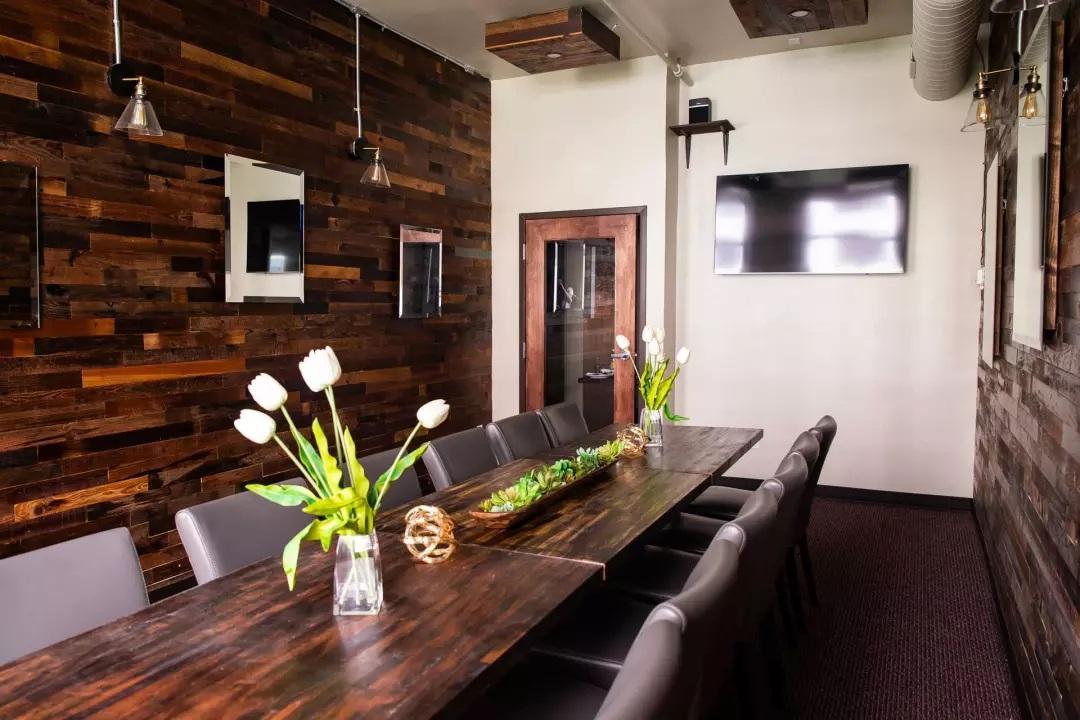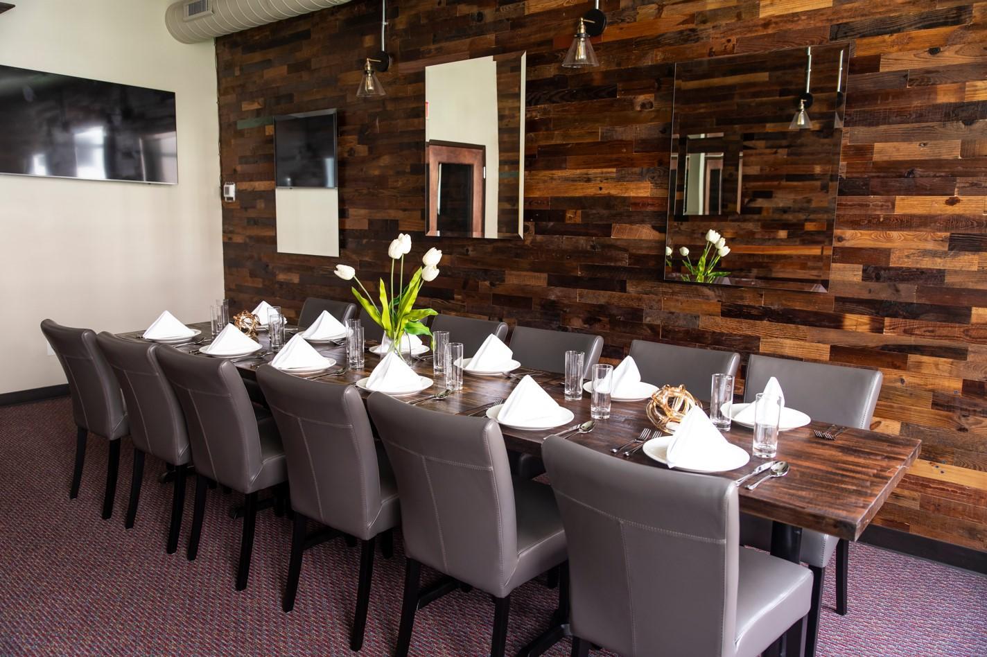 The North Room, located on the third floor, is equipped to seat 20 guests and is ideal for corporate meetings, team dinners, and conferences. With a screen perfect for presentations or rehearsal dinners, it offers a professional yet intimate setting. Accessible by elevator, the North Room also features its own handicap-accessible restrooms, ensuring convenience and comfort for all guests.
