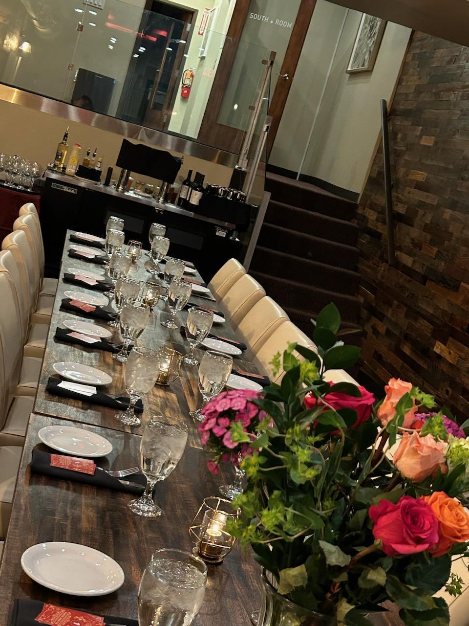 Sura’s Compass Room on the second floor can comfortably seat 64 guests without a buffet and 55 guests with a buffet setup. Accessible by both elevator and stairs, this elegant and private space is ideal for any celebration. We offer a variety of customizable prefix menu options to suit your needs, ensuring a personalized and memorable dining experience for you and your guests.