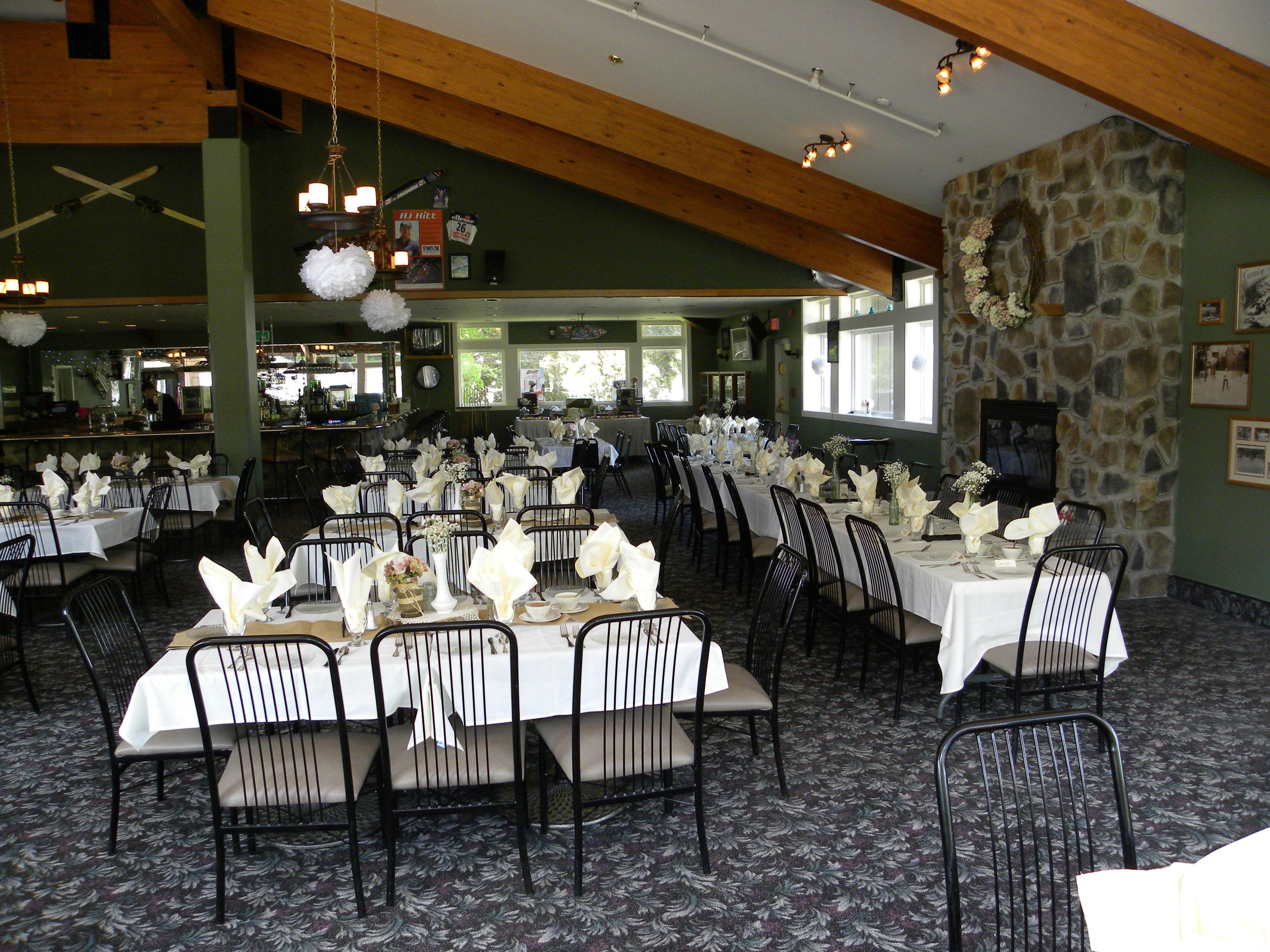 The Shawmut Grille features ample indoor seating space for your guests, room for a band or DJ, and u shaped bar as well as a wrap around deck with outdoor seating and views of the ski slopes.